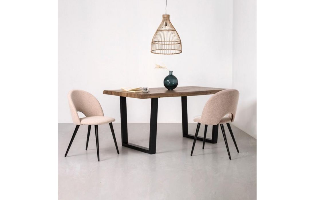 Mesa de jantar em madeira de MDF com pernas em metal.
