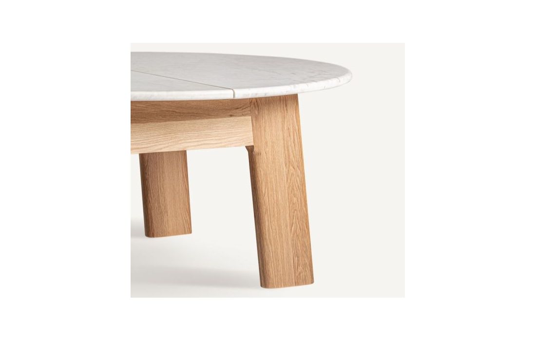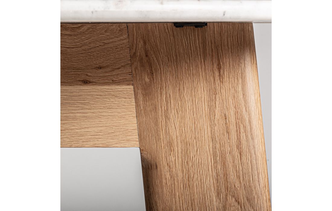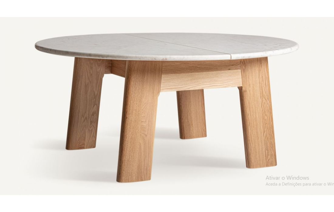 Mesa de jantar com tampo em Mármore e pés em madeira de Carvalho.