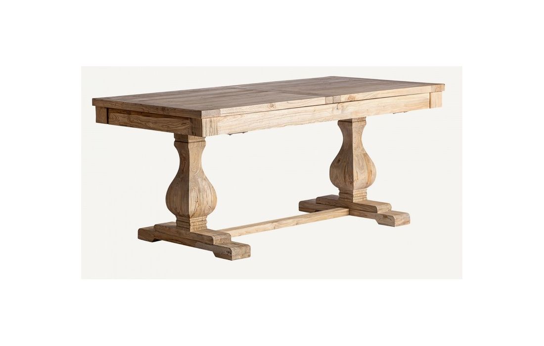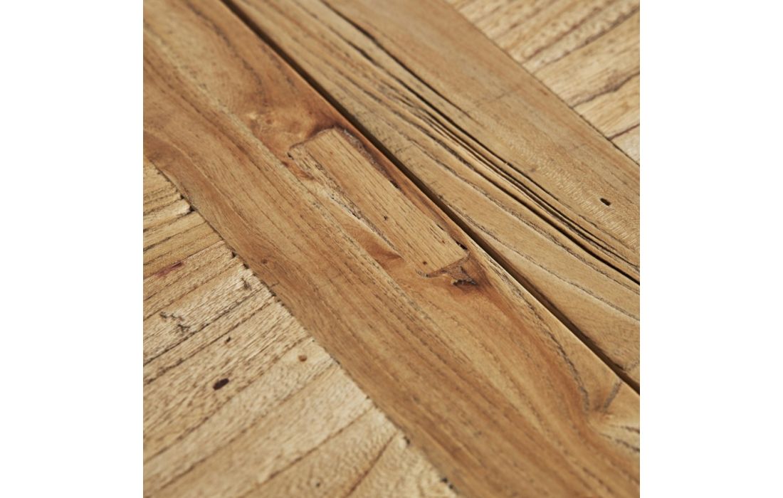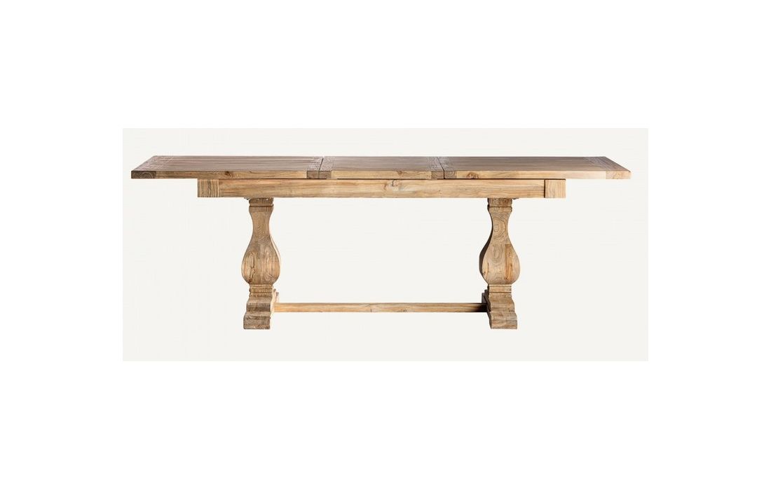 Mesa de jantar extensível confeccionada em madeira de olmo reciclada na cor castanha