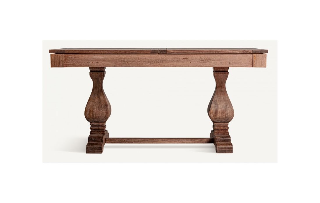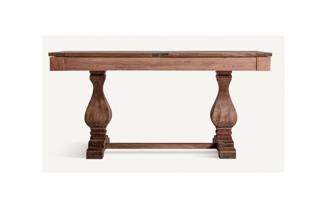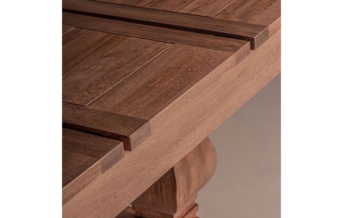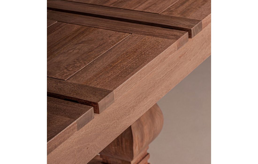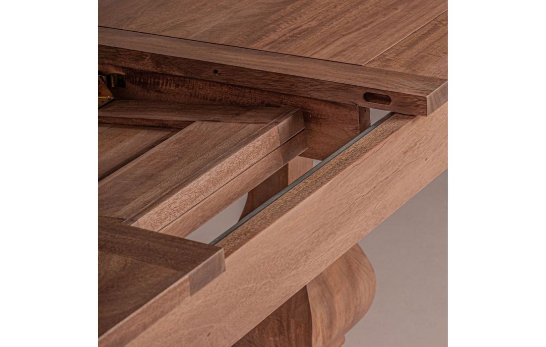 Mesa de jantar extensível, estilo colonial, confeccionada em madeira de mango na cor castanhaDimensões em cm