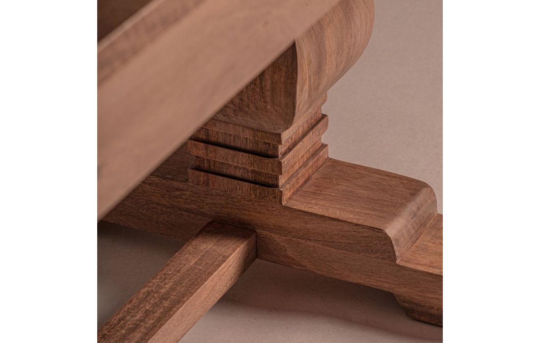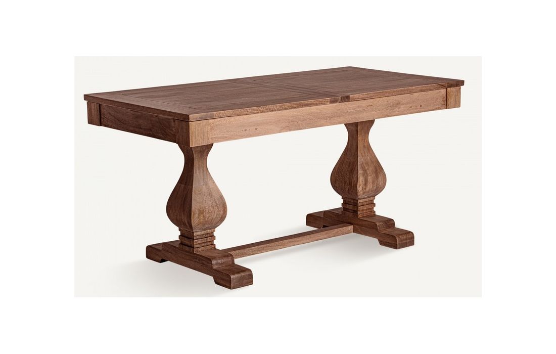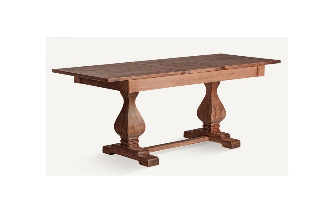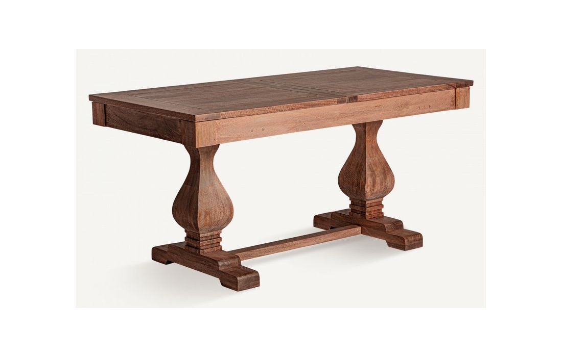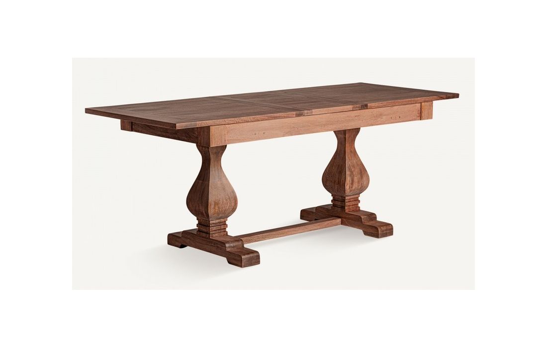 Mesa de jantar extensível, estilo colonial, confeccionada em madeira de mango na cor castanhaDimensões em cm