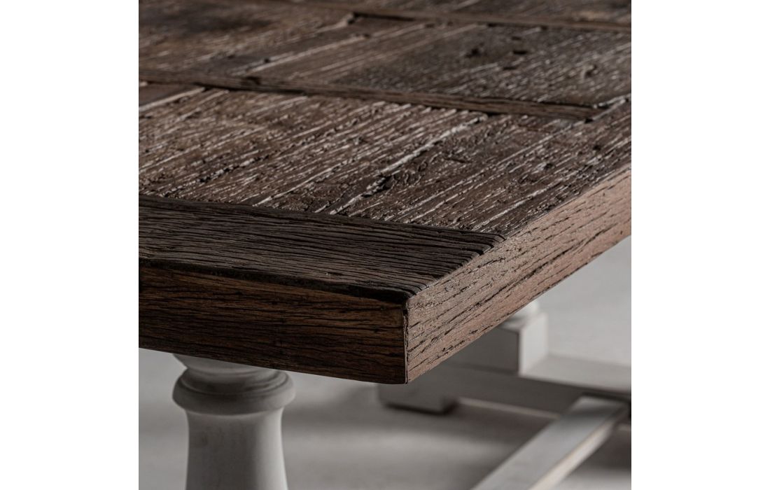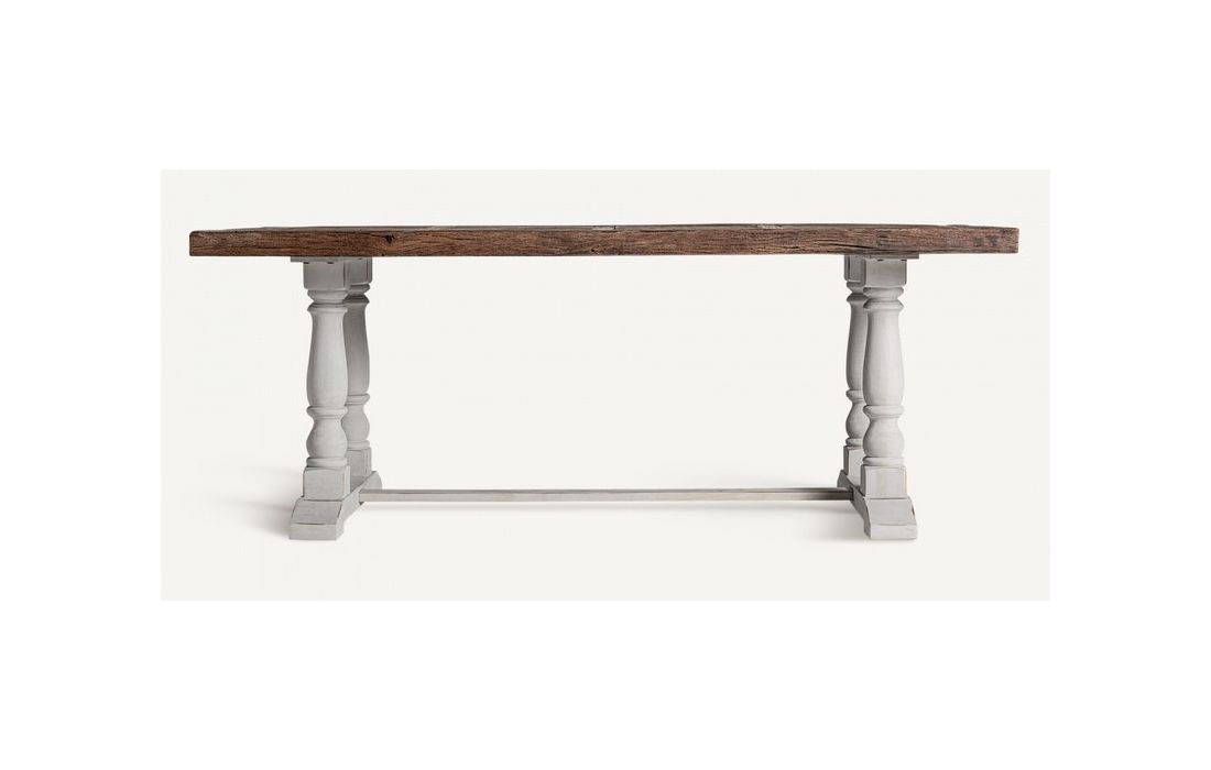 Mesa de Jantar no estilo provençal confeccionada em madeira de olmo reciclada na cor branca combinada com madeira de mango na cor castanhaDimensões em cm