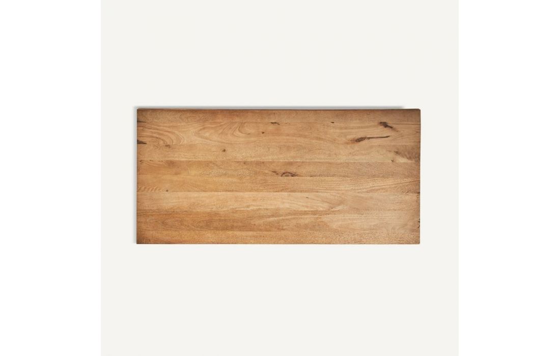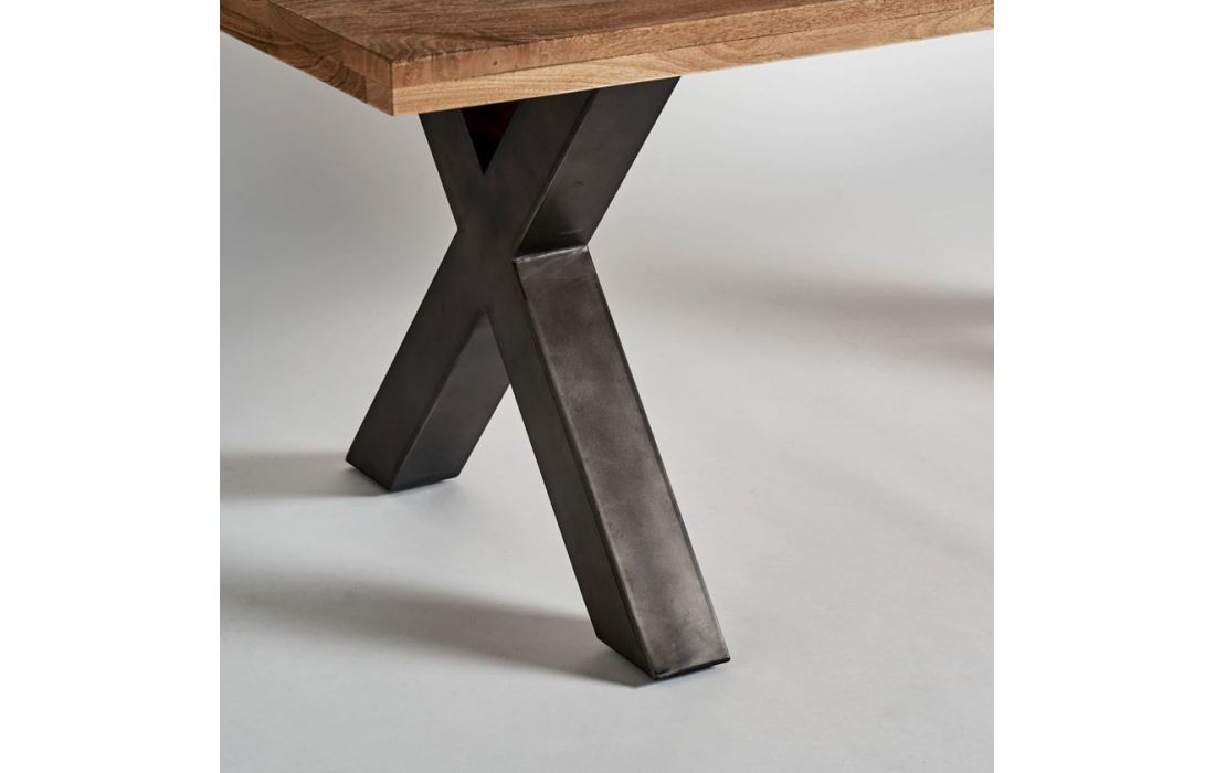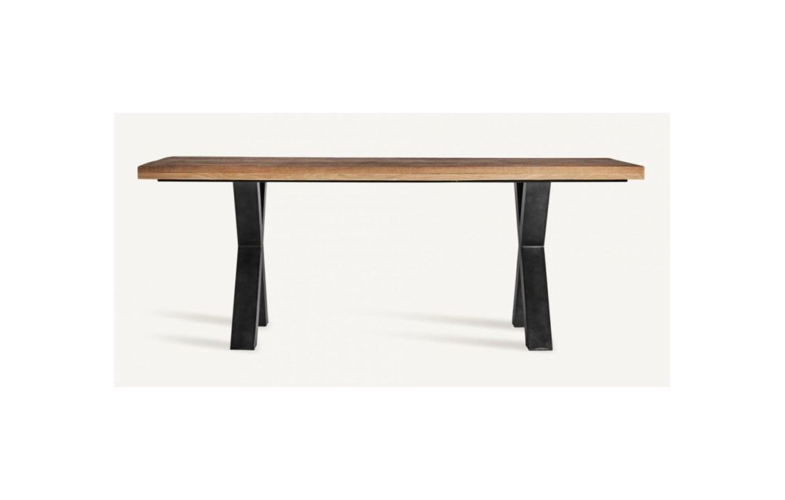 Mesa de jantar feita em madeira de mango na cor castanha combinada com ferro na cor preta