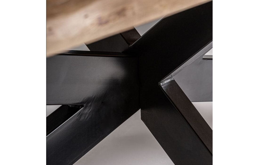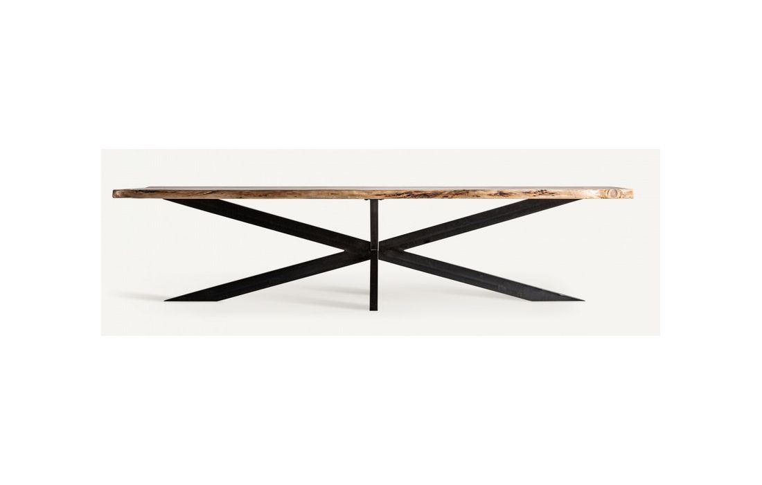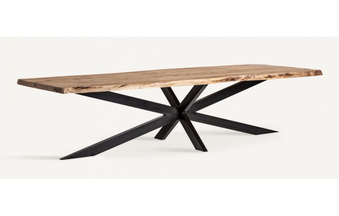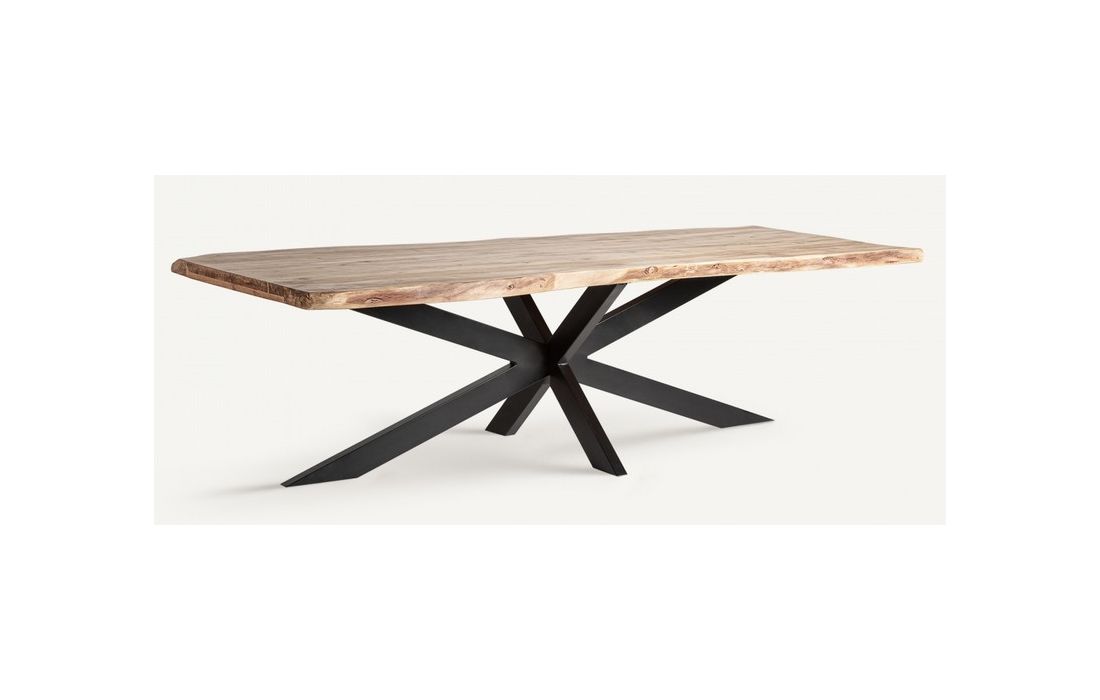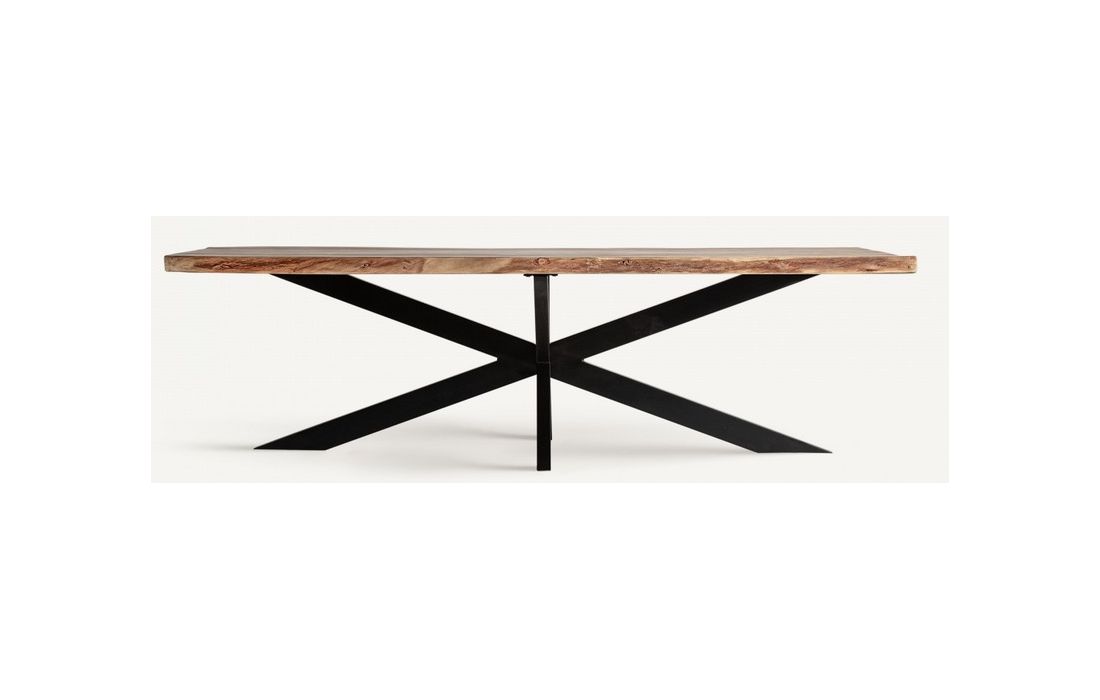 Mesa de jantar com pés em ferro e tampo em madeira de acácia