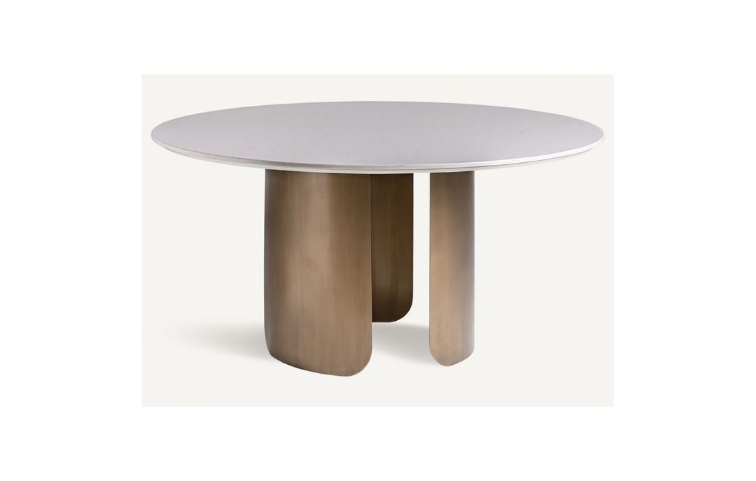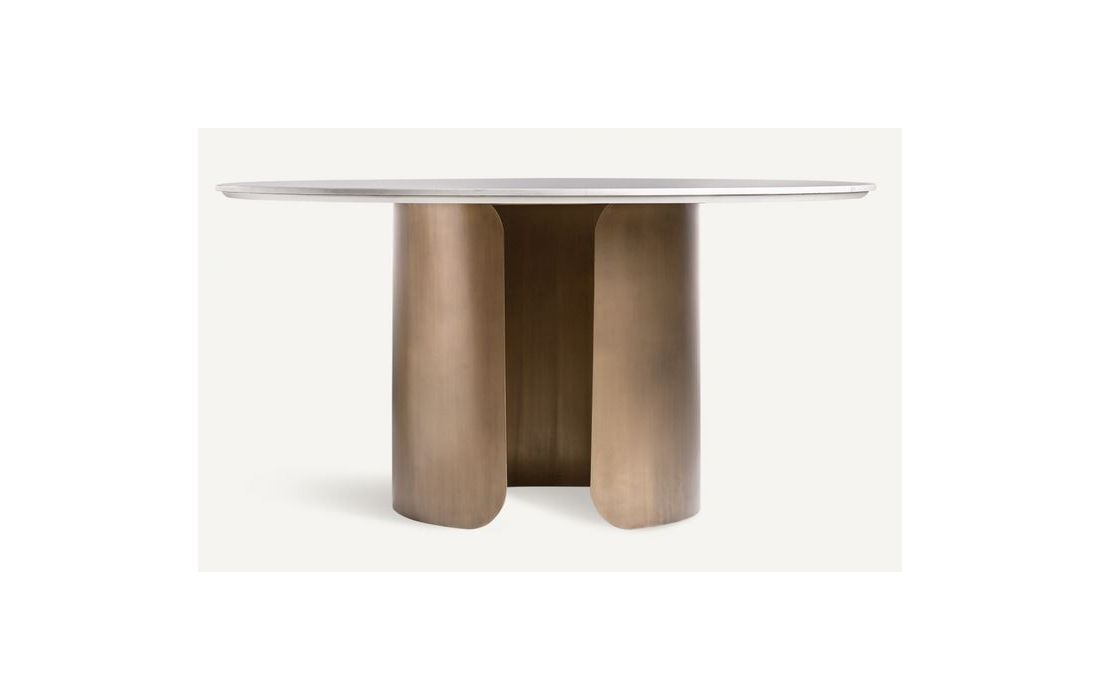 Mesa de jantar redonda em aço e porcelanaDimensões em cm