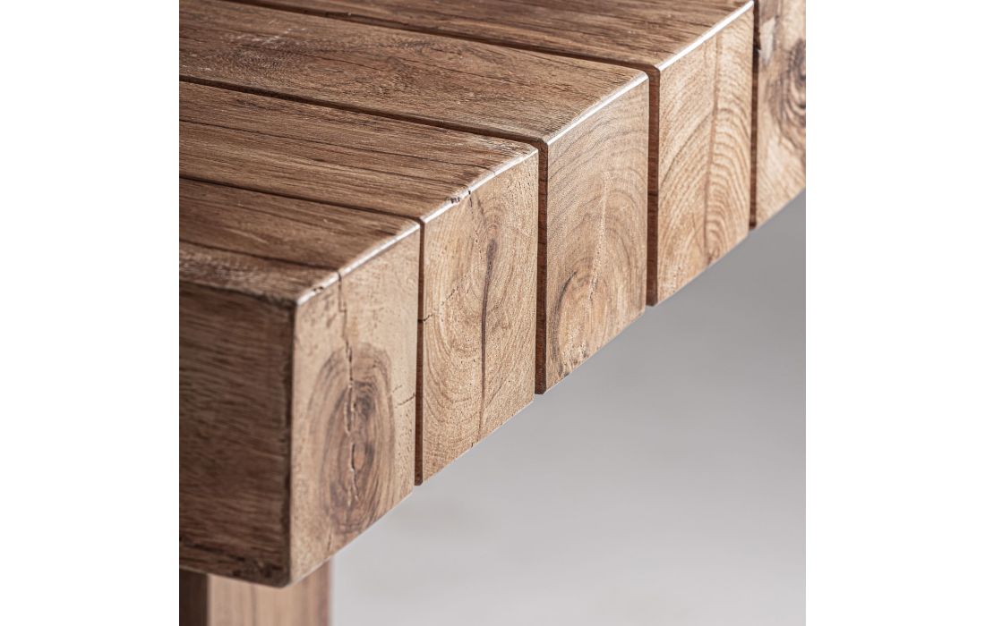 A MESA DE JANTAR RIOM funde um estilo contemporâneo com o calor da madeira recuperada. Uma peça que se torna um ponto de encontro, onde o design e a naturalidade apertam as mãos.