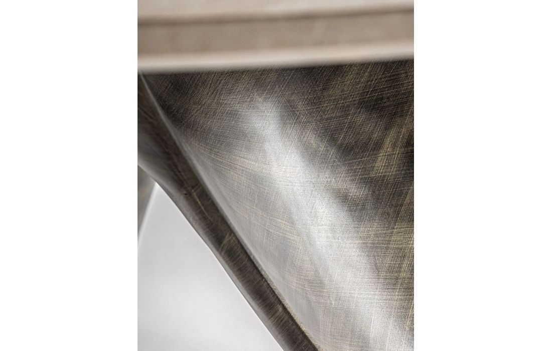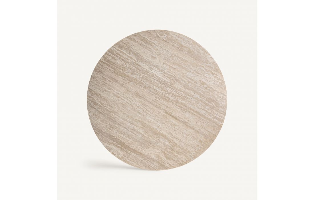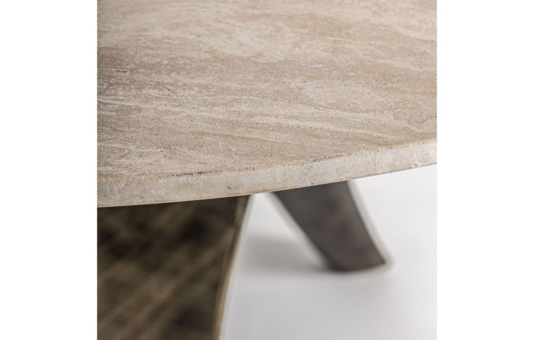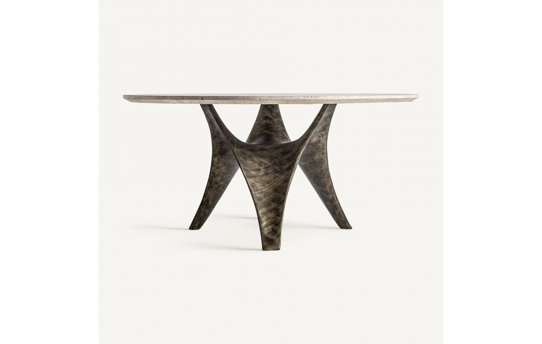 A MESA DE JANTAR LAIZE, feita de travertino e aço envelhecido, é uma peça de forte presença visual. Sua base metálica proporciona contraste e sua superfície de pedra natural transmite solidez e elegância.Destinatário :