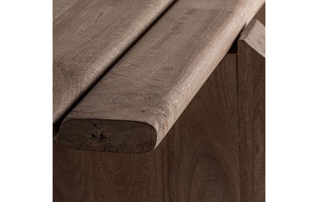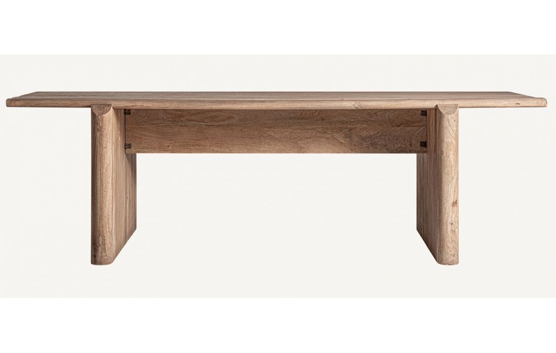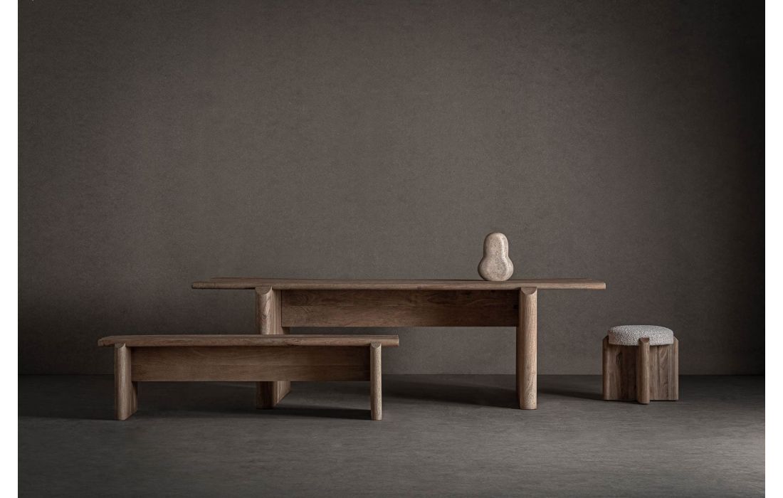 A MESA DE JANTAR JACQUARD, minimalista, possui uma estrutura removível em madeira de mango que equilibra funcionalidade e caráter. Uma peça de estética limpa, honesta e contemporânea.