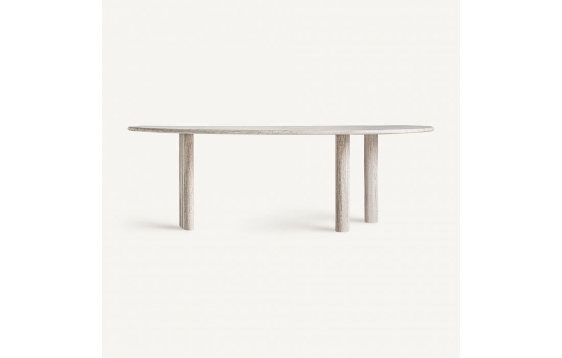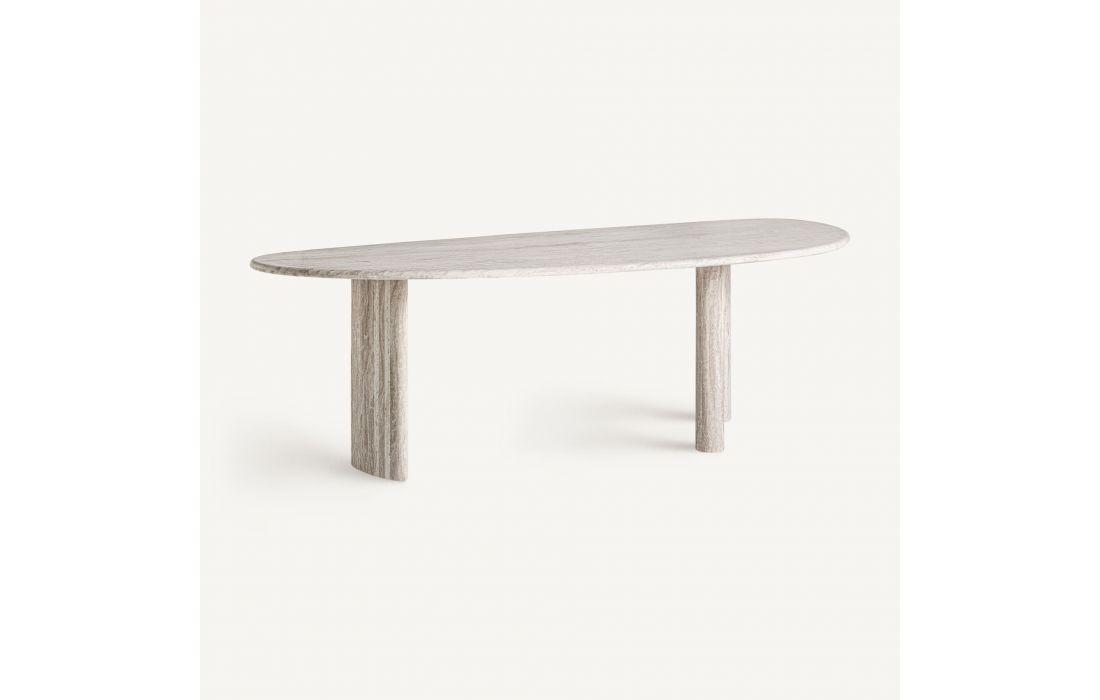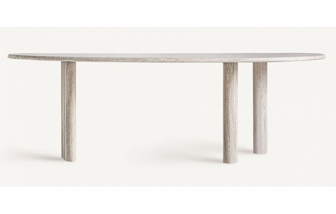 A MESA DE JANTAR THIENNES se destaca por seu travertino quebrado. Um design art déco com uma grande presença visual, projetado para projetos que buscam sofisticação e atemporalidade.