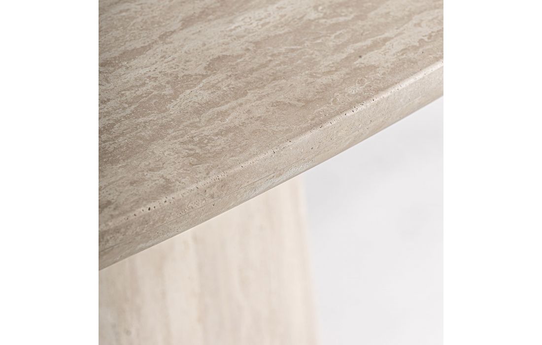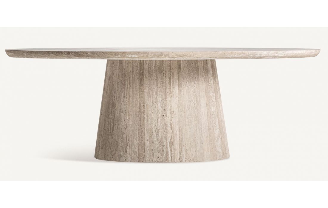 Projetado para os amantes do autêntico, A MESA DE JANTAR THIENNES se destaca por seu acabamento em travertino e linhas puras. Uma peça que traz elegância mineral para qualquer sala de jantar.