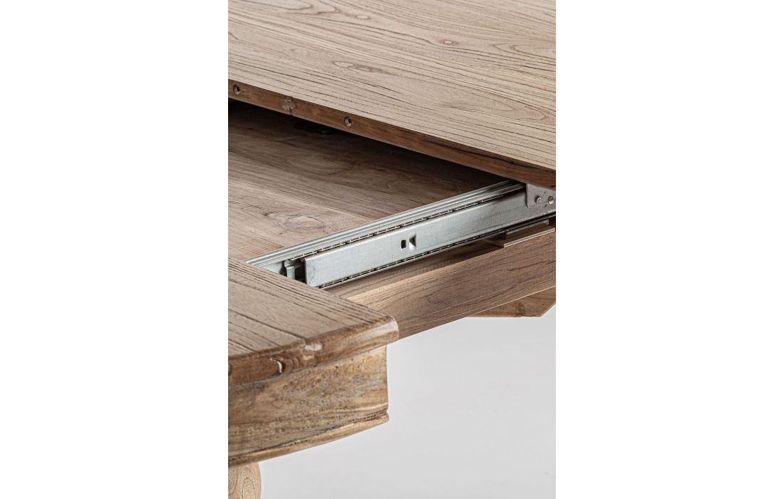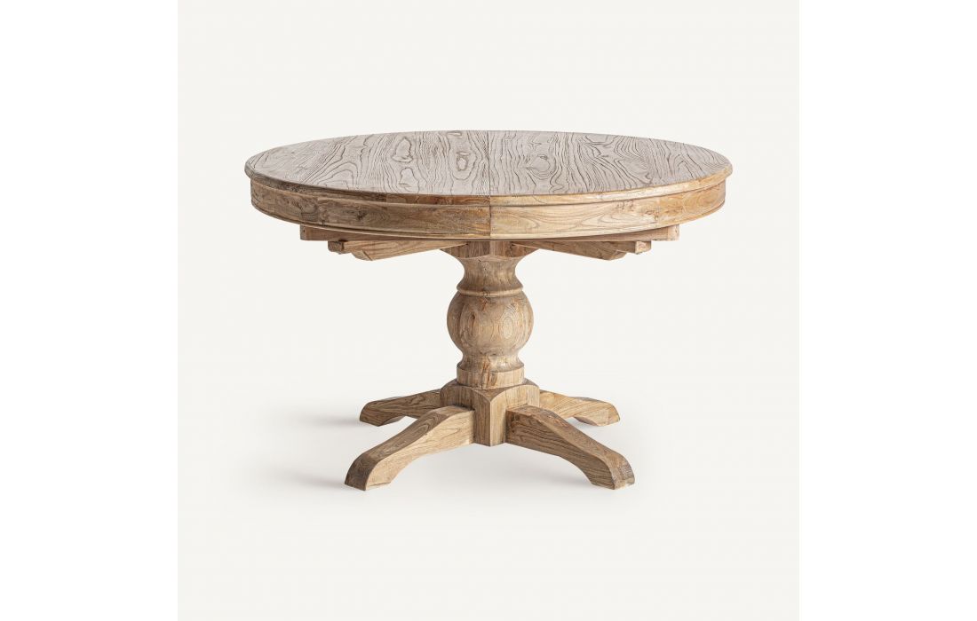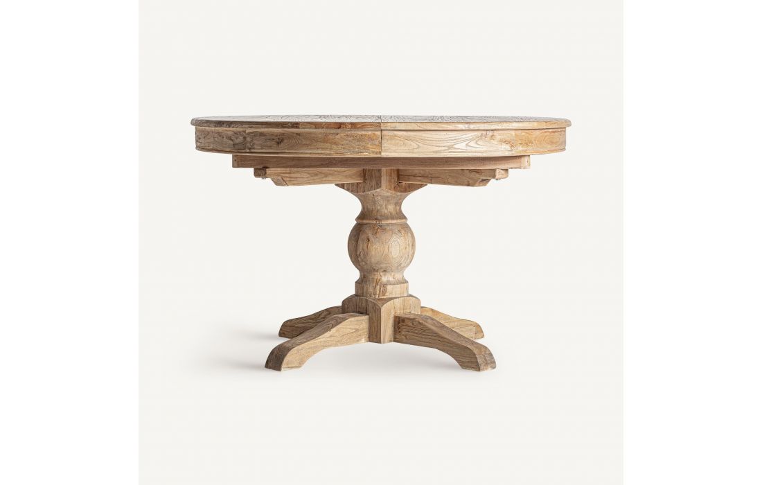 Reinterpreta o estilo colonial com a MESA DE JANTAR EXTENSÍVEL SONVIGO. Feito de madeira de olmo reciclado, esta peça combina funcionalidade e estética atemporal. Seu design extensível o torna uma solução versátil para salas de jantar baseadas em história.