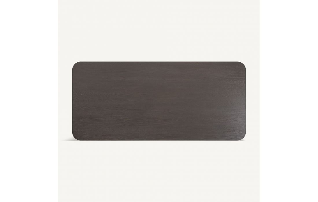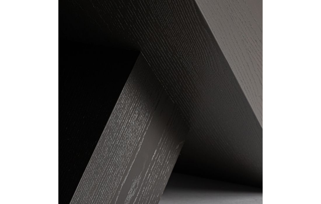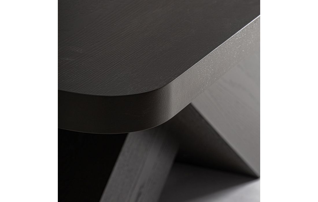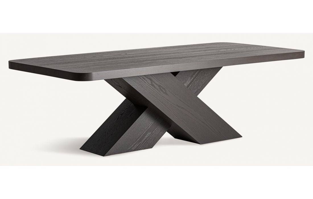 Esta mesa de jantar oferece um estilo contemporâneo em madeira de carvalho. Sua estrutura de cruz preta traz força e modernidade arquitetônica, enquanto a placa gera uma superfície limpa e elegante, uma peça sólida e versátil.