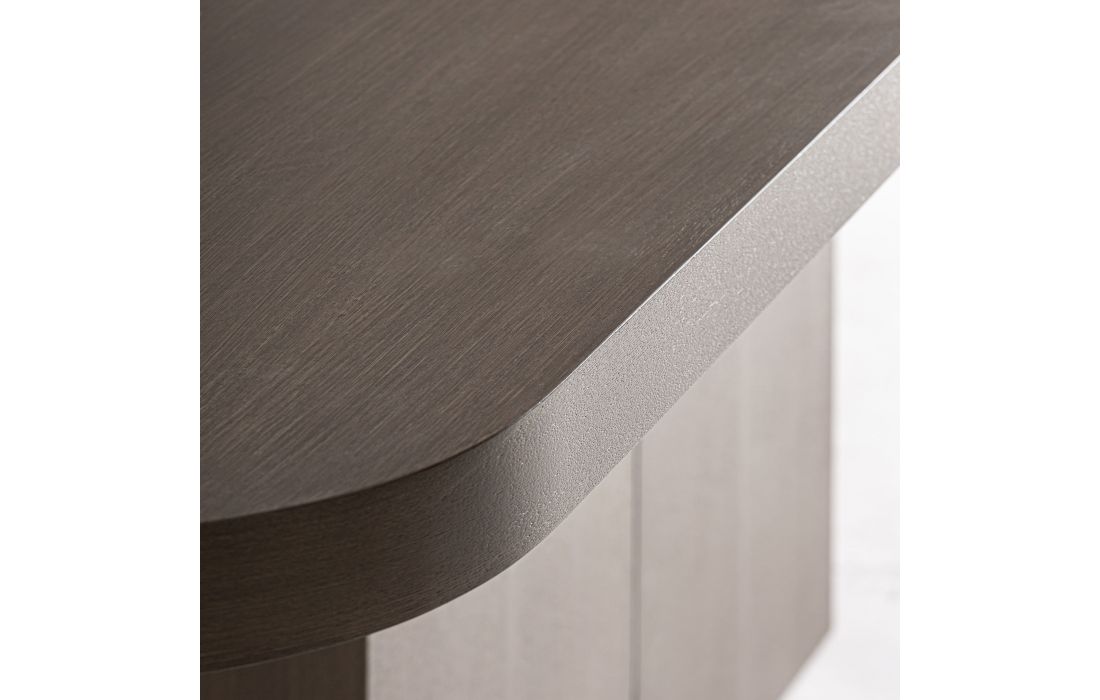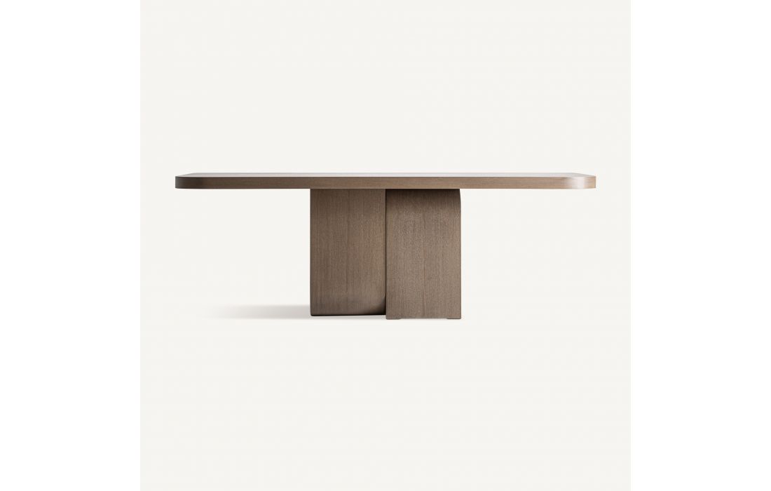 Esta mesa jantar tem uma estética contemporânea baseada na pureza das formas. O carvalho fornece nobreza e textura, enquanto a base geométrica introduz uma presença escultural sutil. Uma peça elegante e atemporal que realça qualquer sala de jantar.
