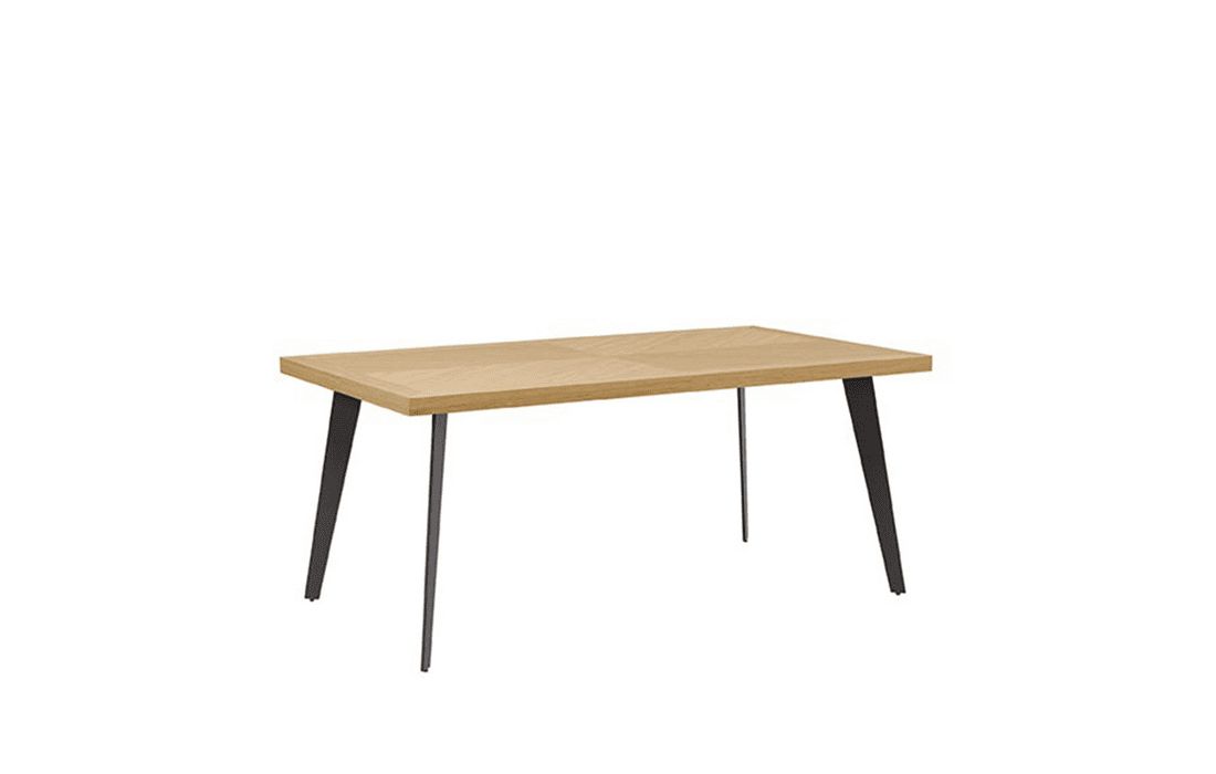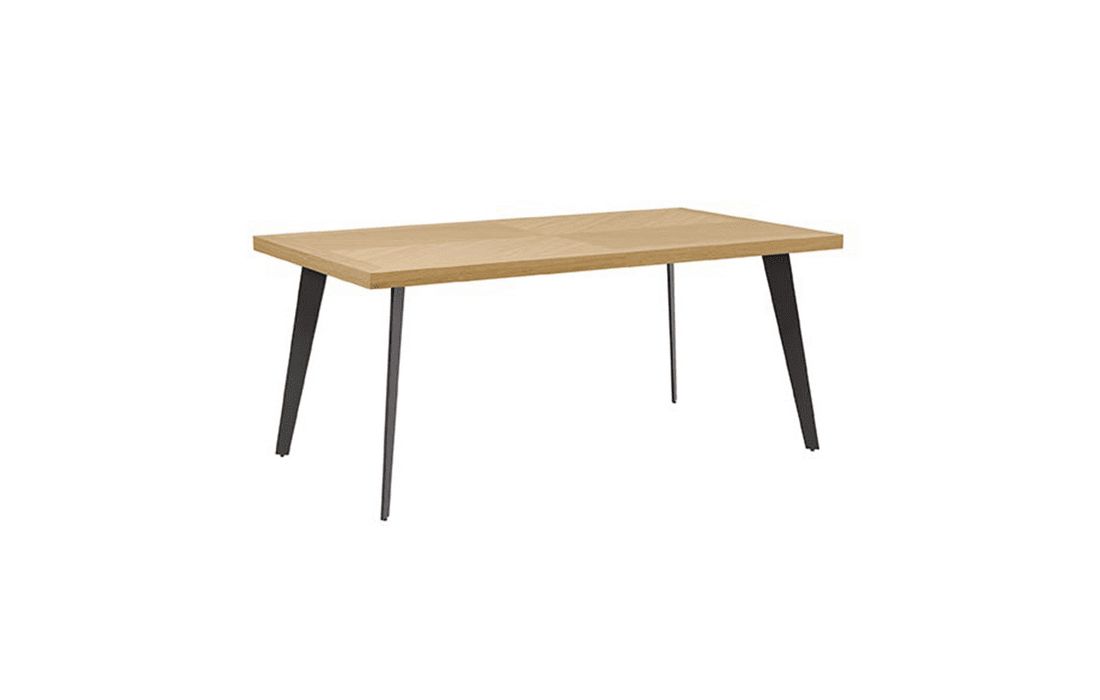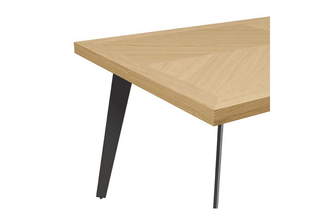 Esta mesa emana personalidade e estilo com a sua presença sólida e equilibrada. Disponível em 4 tamanhos diferentes, folheada a carvalho e com os pés em metal preto, oferece design sem sacrificar a funcionalidade.