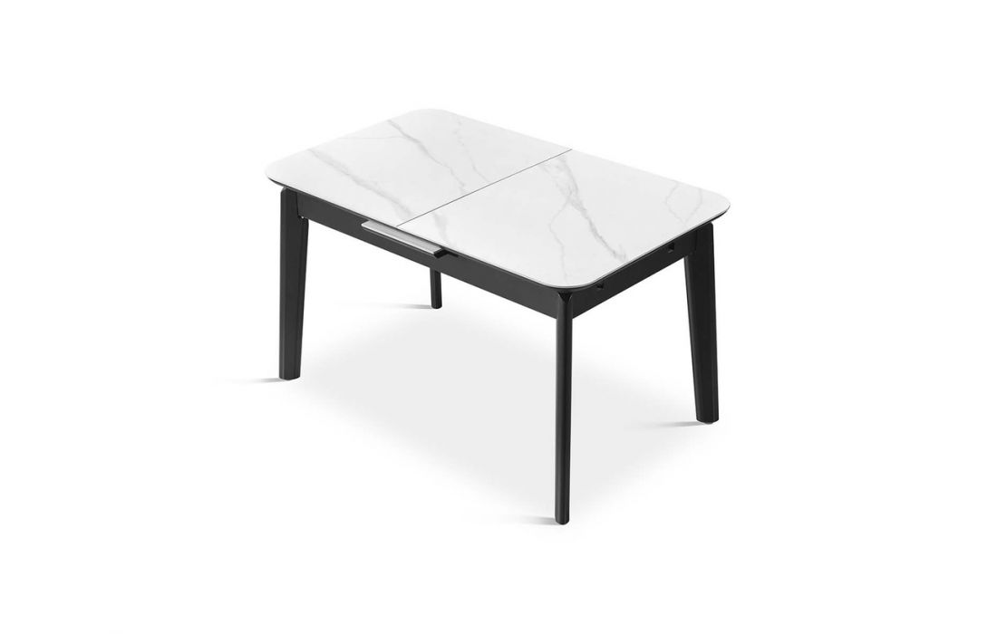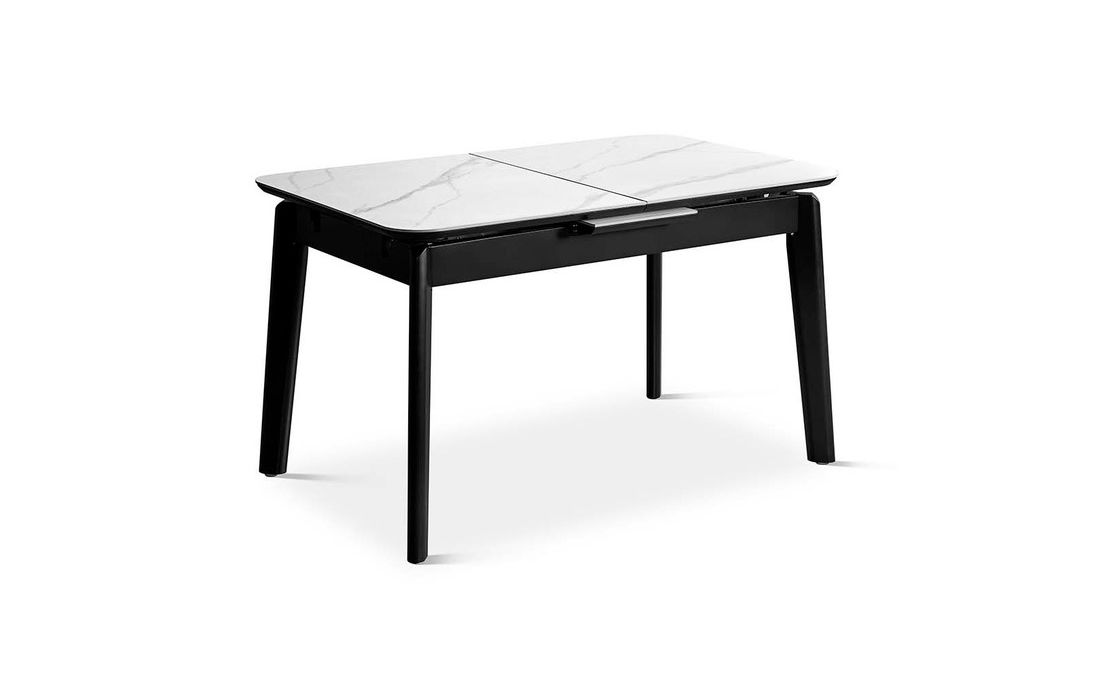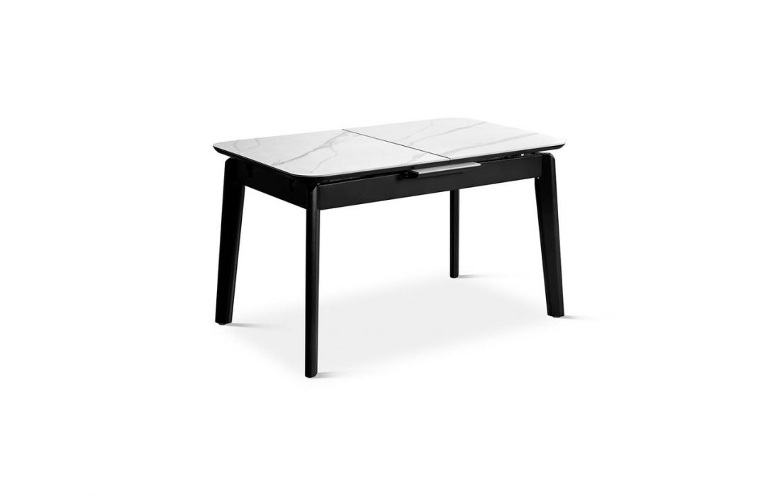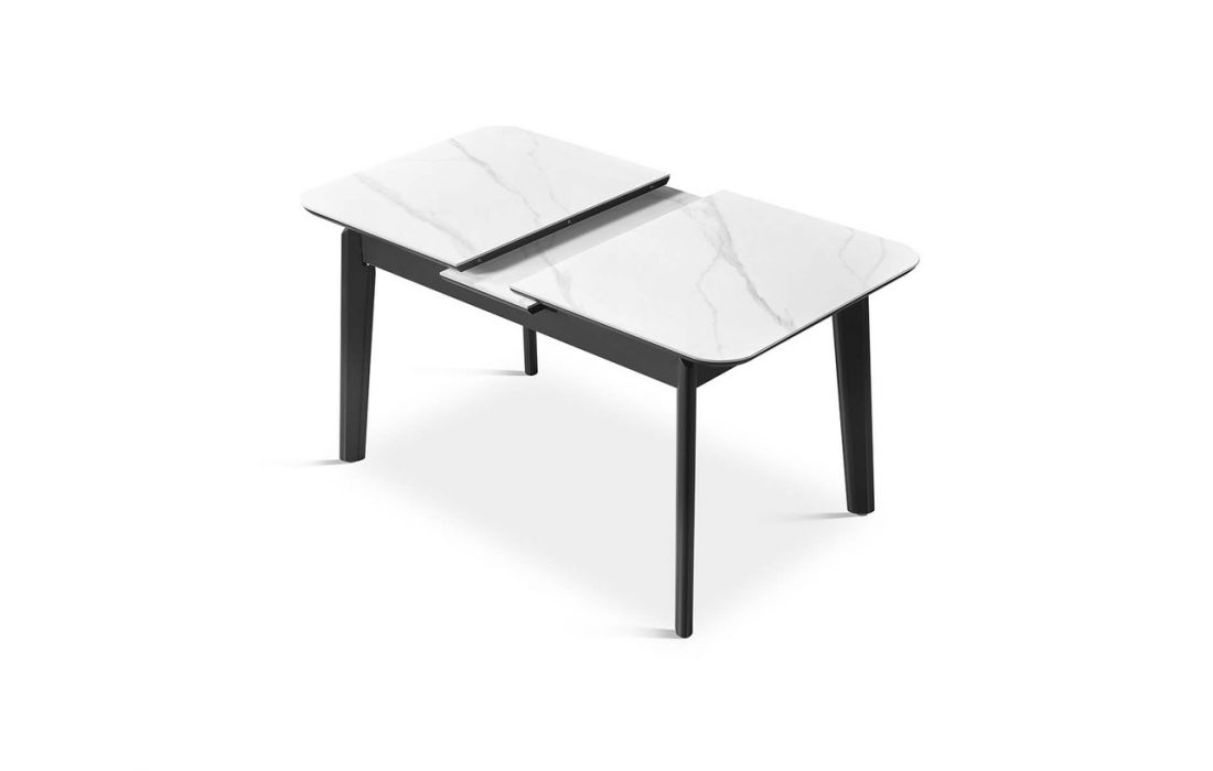 Mesa extensível com tampo em porcelana, resistente e adequada para o uso diário. O seu design combina funcionalidade e elegância. Possui pés em madeira maciça, que garantem estabilidade e durabilidade.