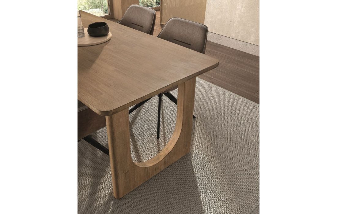 Mesa em madeira maciça de carvalho, com design simples e contemporâneo. A sua estrutura robusta garante durabilidade, tornando-a ideal para o uso diário em diferentes espaços.