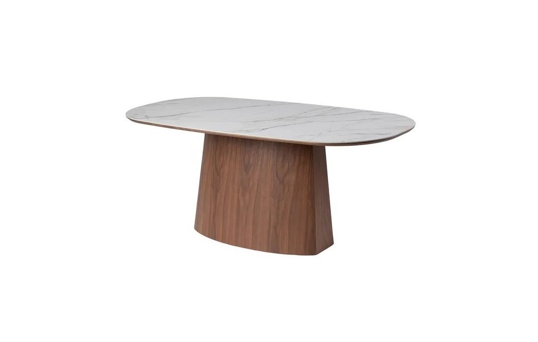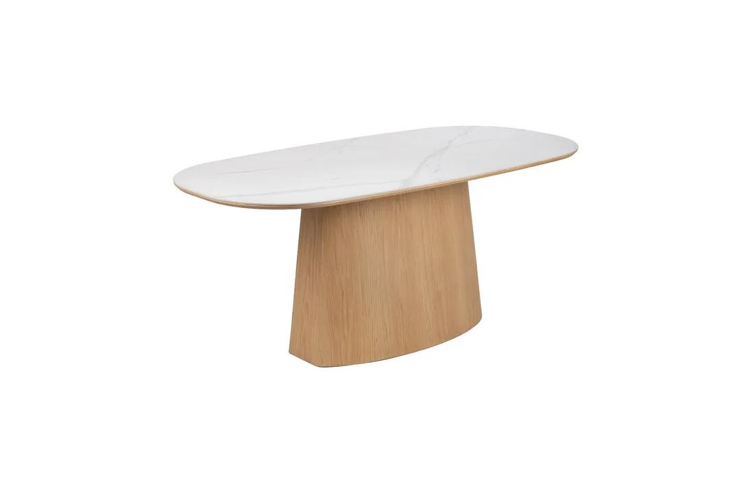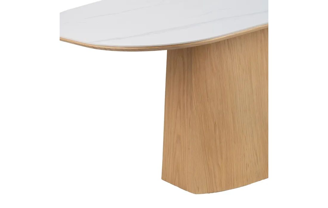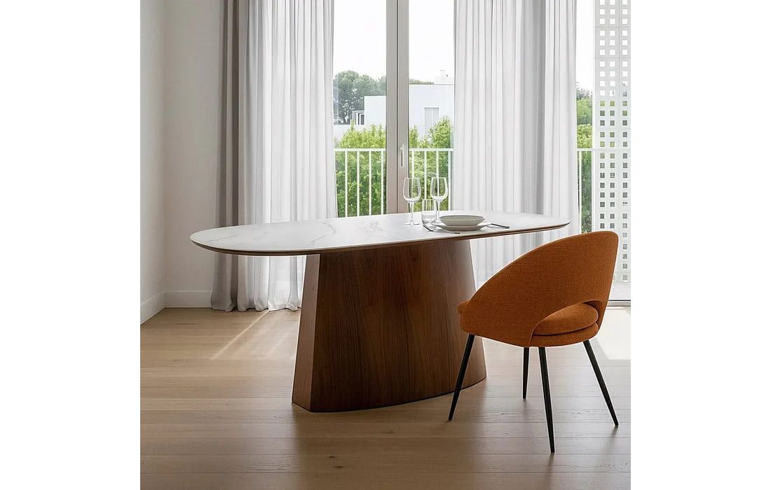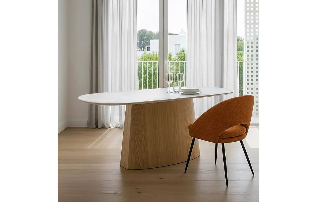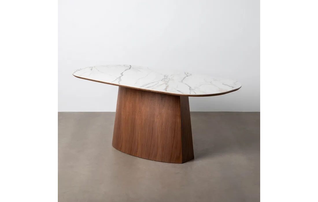 Esta mesa de jantar combina sofisticação e funcionalidade num design contemporâneo. Com estrutura em MDF e tampo em cerâmica, oferece elevada resistência, durabilidade e fácil manutenção.
