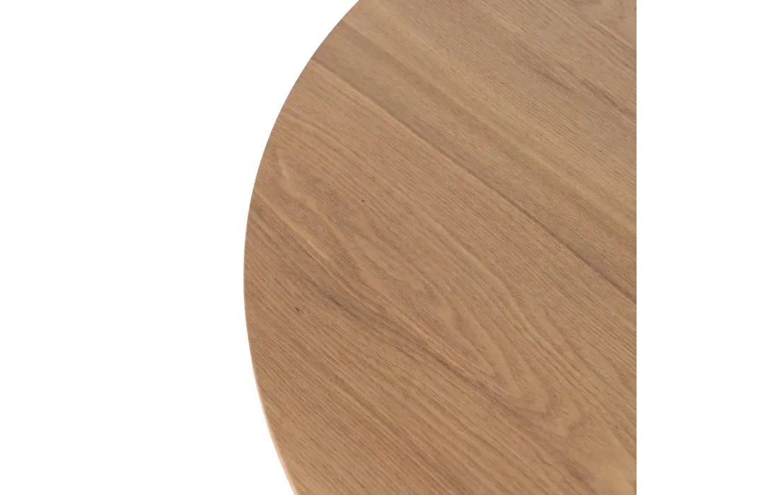 Esta mesa de jantar apresenta um design simples e elegante, inspirado no estilo escandinavo. Com tampo redondo e estrutura em MDF folheado a carvalho, combina a resistência do material com a beleza natural da madeira, criando um ambiente acolhedor e harmonioso.