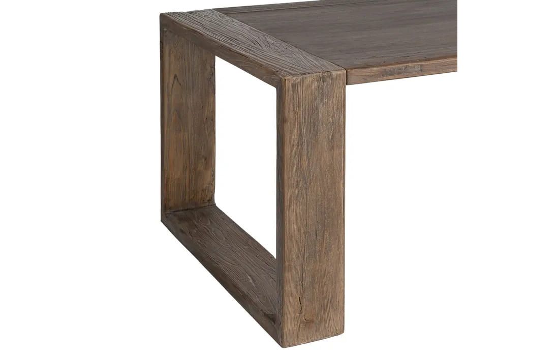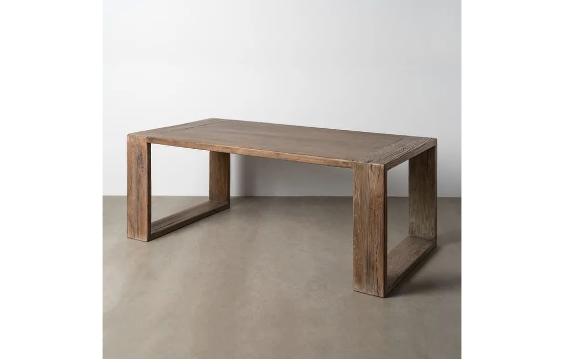 Esta mesa de jantar, em madeira de olmo, destaca-se pela sua elegância simples e pela beleza autêntica da madeira. Produzida em madeira de elevada qualidade, apresenta veios expressivos e tonalidades suaves que conferem um aspeto natural e acolhedor.Destinatário :