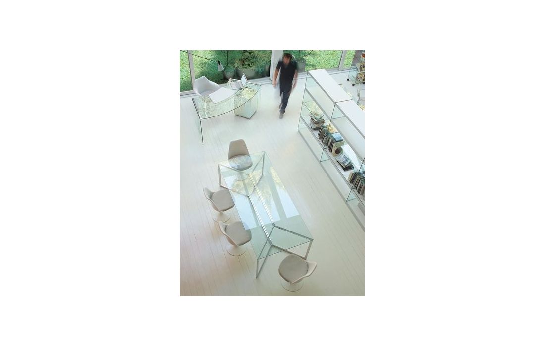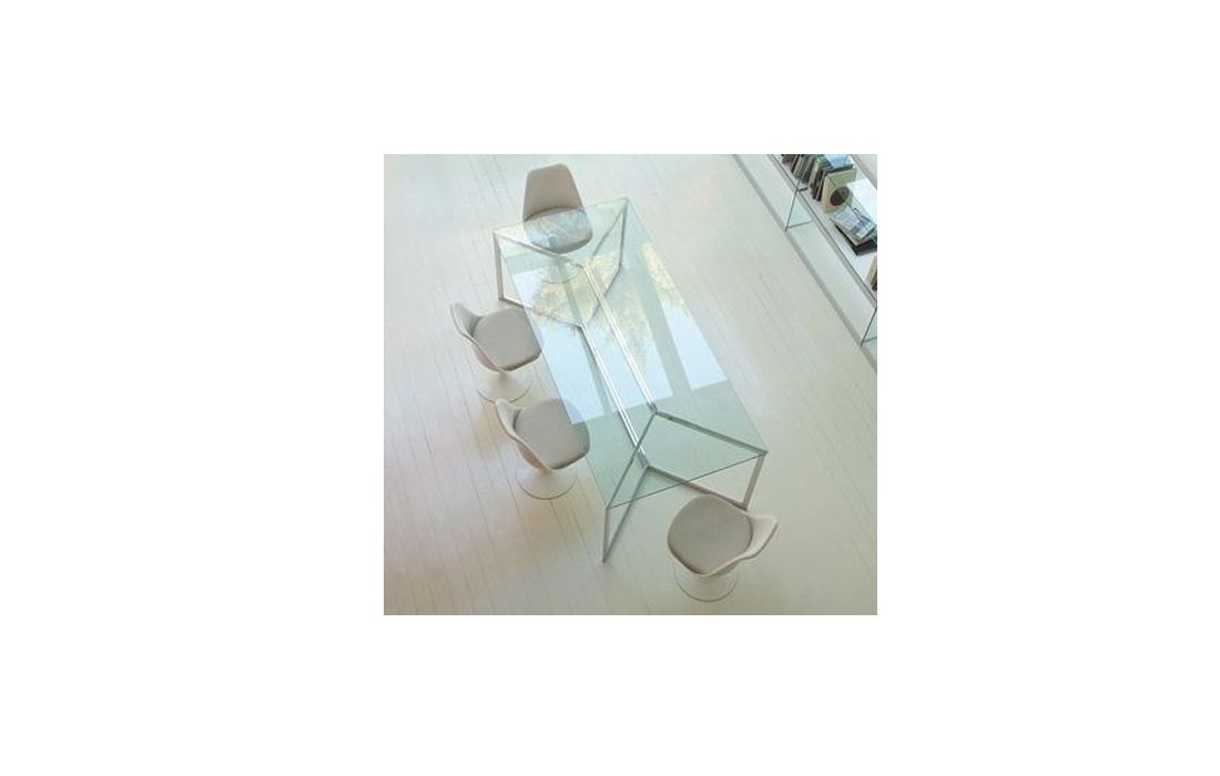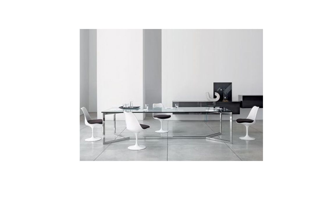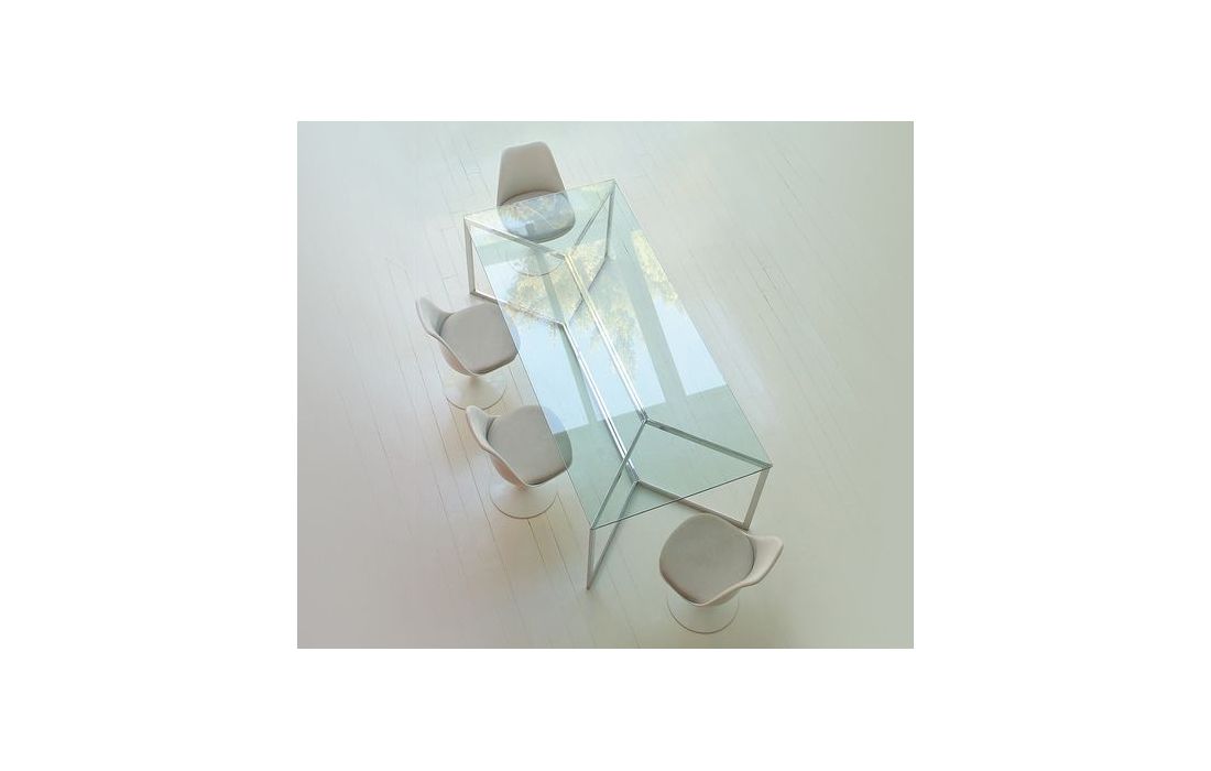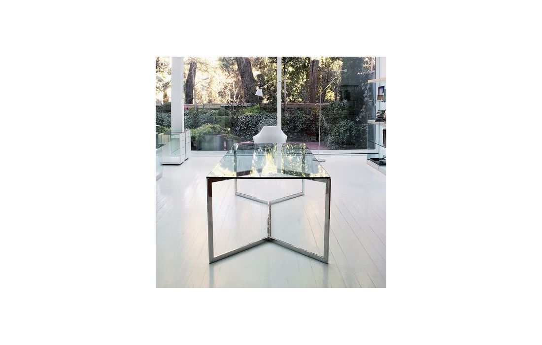 Mesa com um design bastante interessante com a base em inox polido e o tampo de vidro 15mm de espessura.