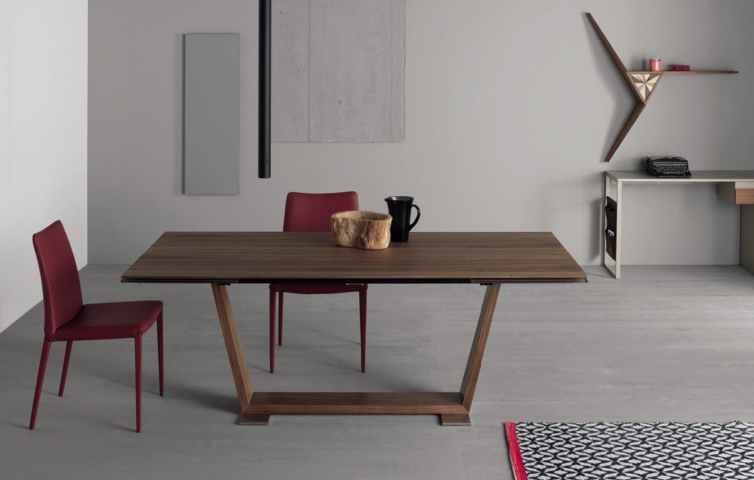 Estrutura extensível de alumínio e tampo em nogueira de 12 mm de espessura