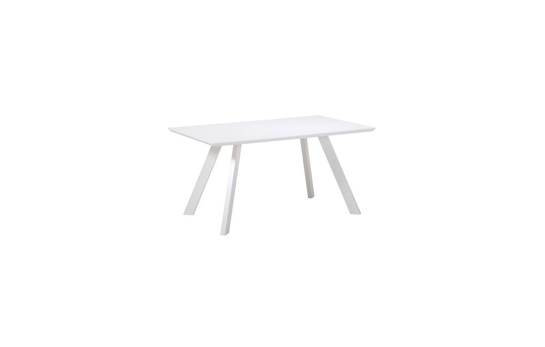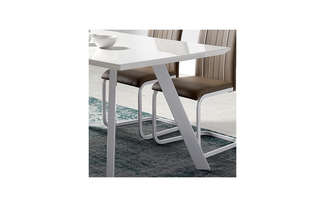 Mesa fixa com tampo lacado branco alto brilho e estrutura em metal pintado em branco