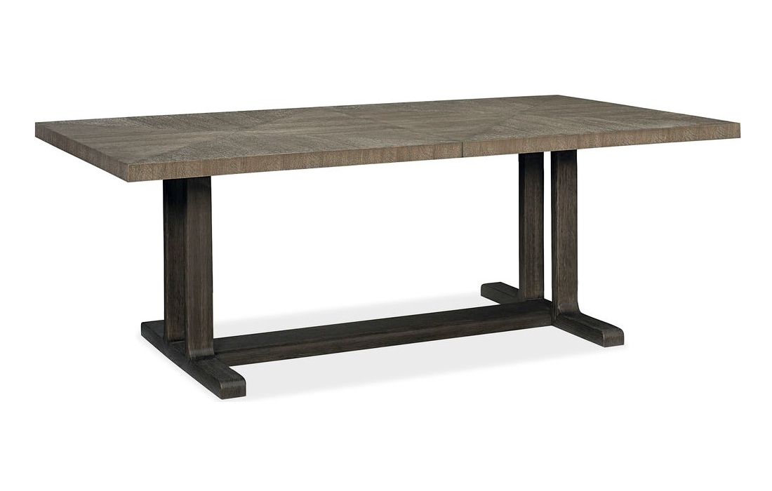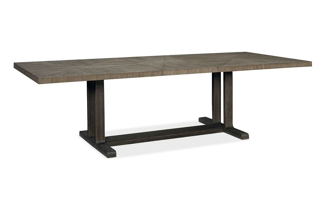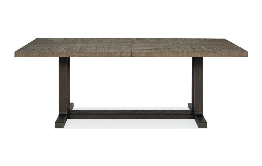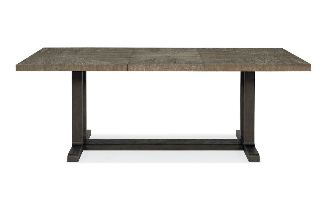 Mesa de jantar extensível com tampo de carvalho e estrutura em carvalho mais escuro