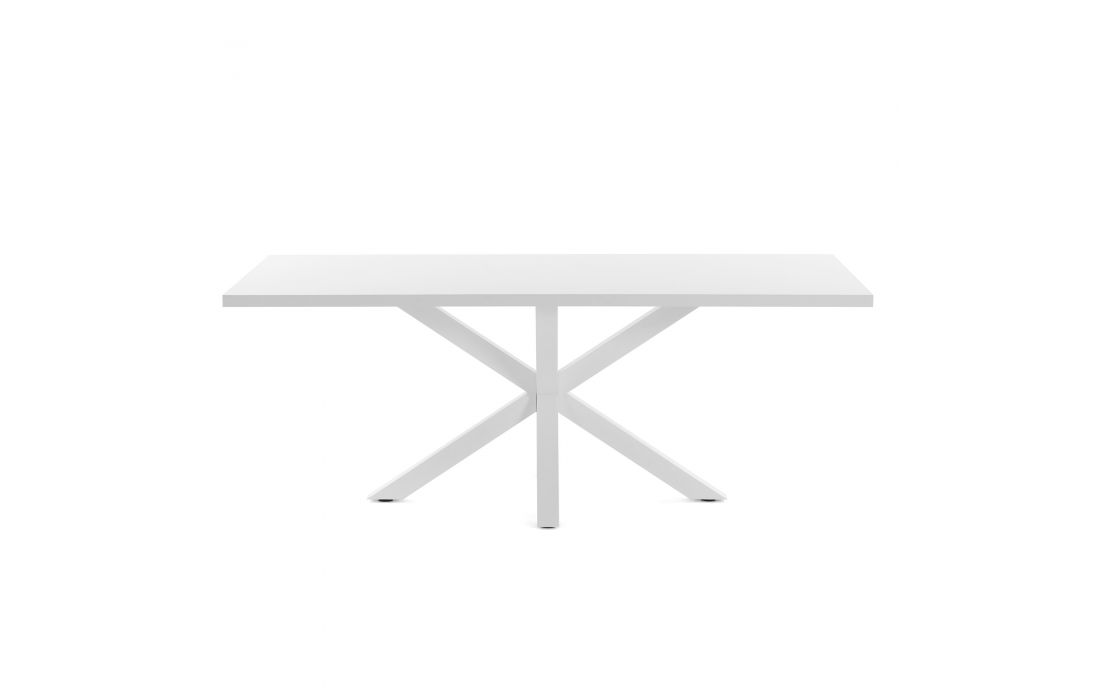 Mesa de Jantar com tampo lacado branco e pernas em aço com o mesmo acabamento