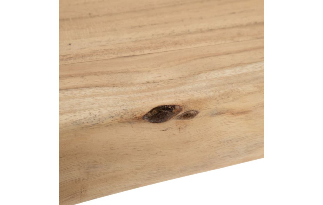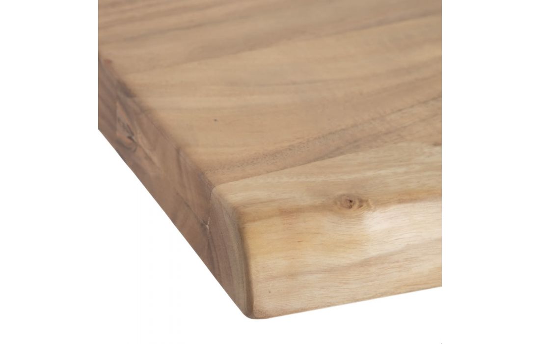 Mesa de refeições com estrutura em metal e com tampo de espessura 5cm de madeira acacia