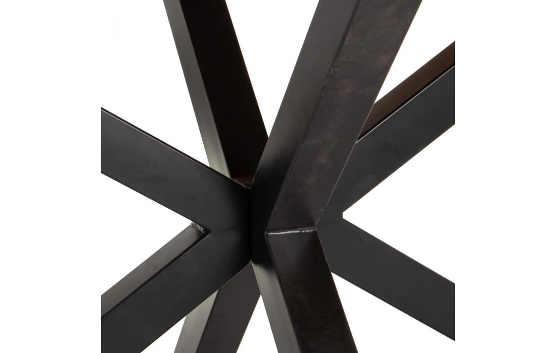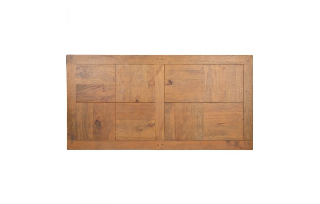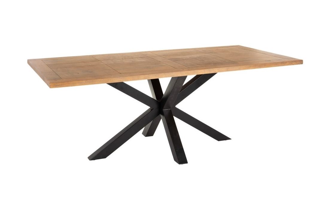 Mesa de refeições com estrutura em metal e com tampo de espessura 4 cm de madeira mango