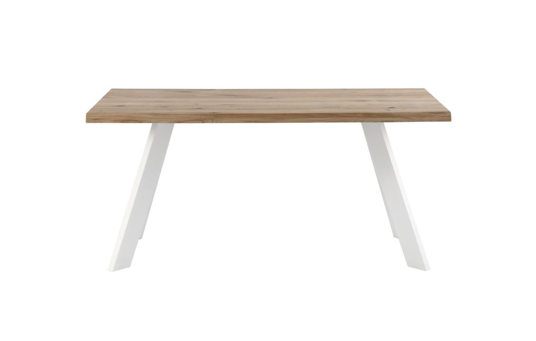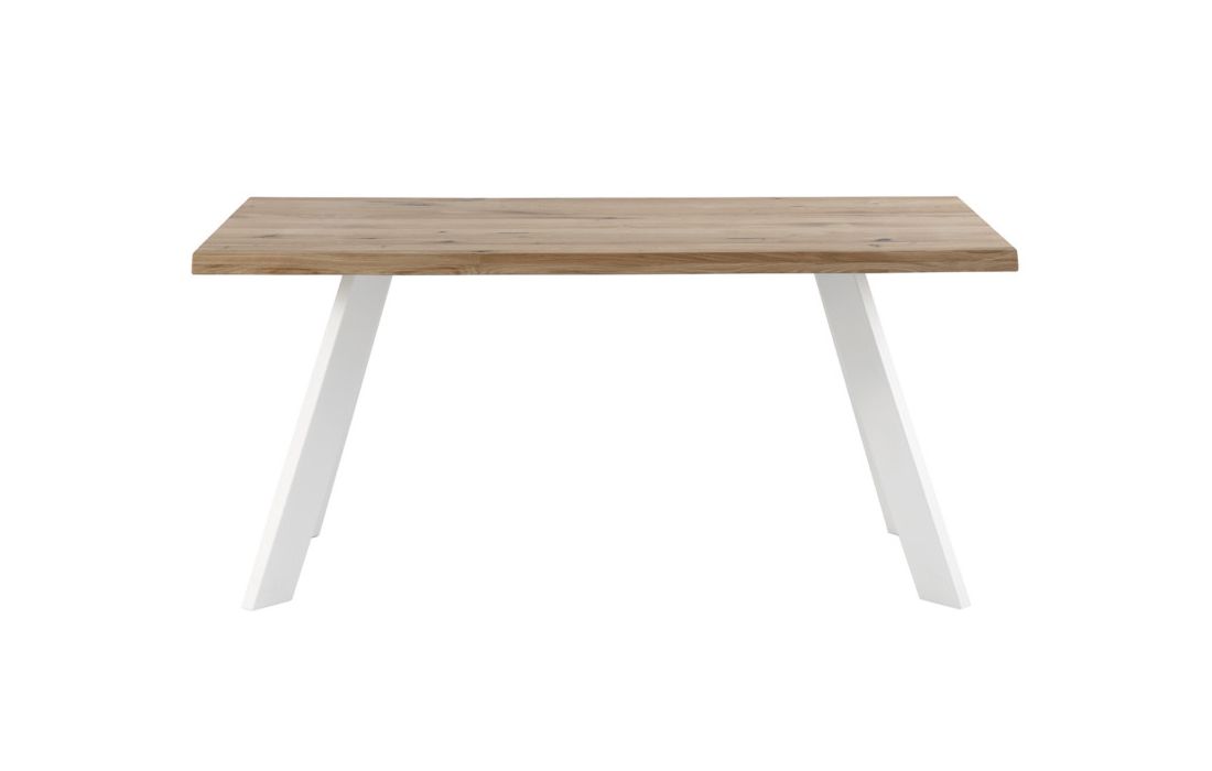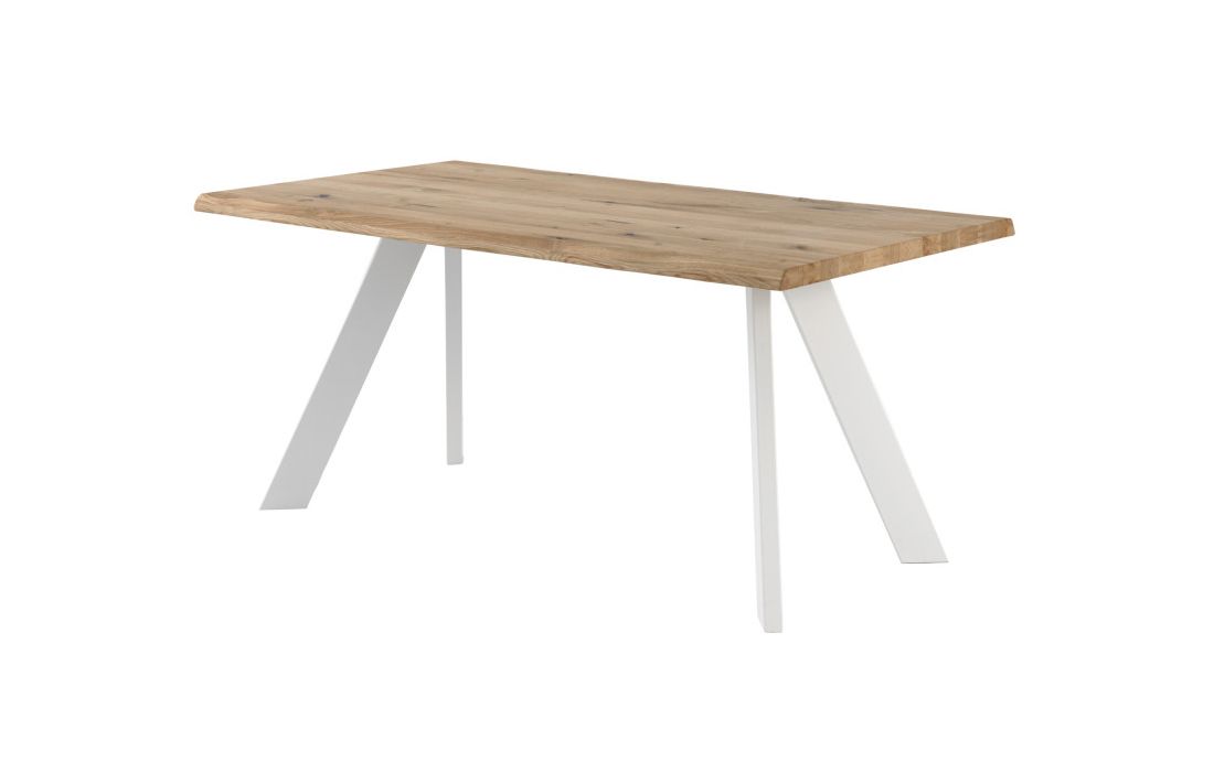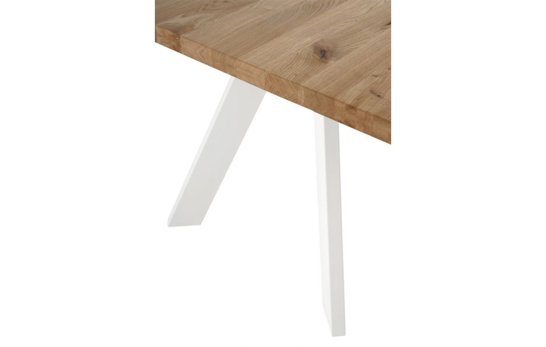 Mesa de jantar retangular com pés em metal cor branca e tampo fixo em madeira de carvalho maciça com várias medidas possiveis