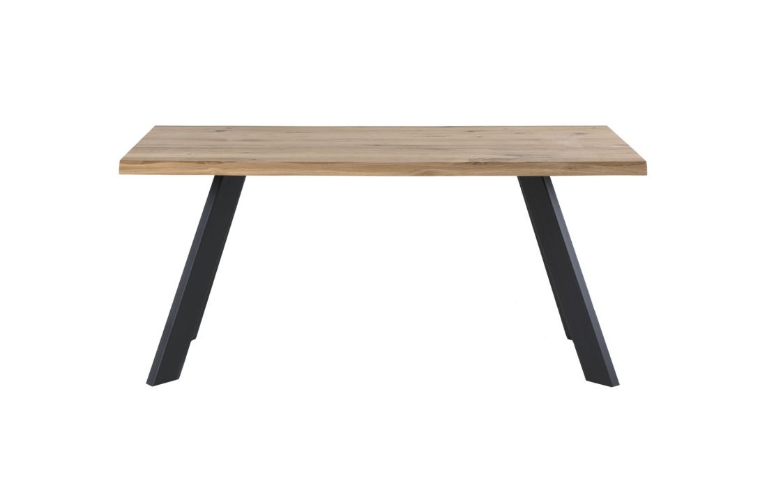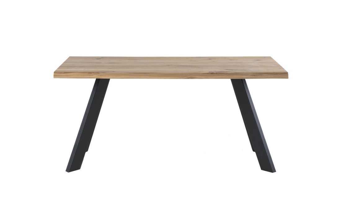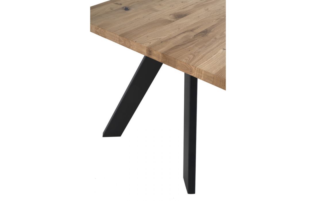 Mesa de jantar retangular com pés em metal cor preta e tampo fixo em madeira de carvalho maciça com várias medidas possiveis