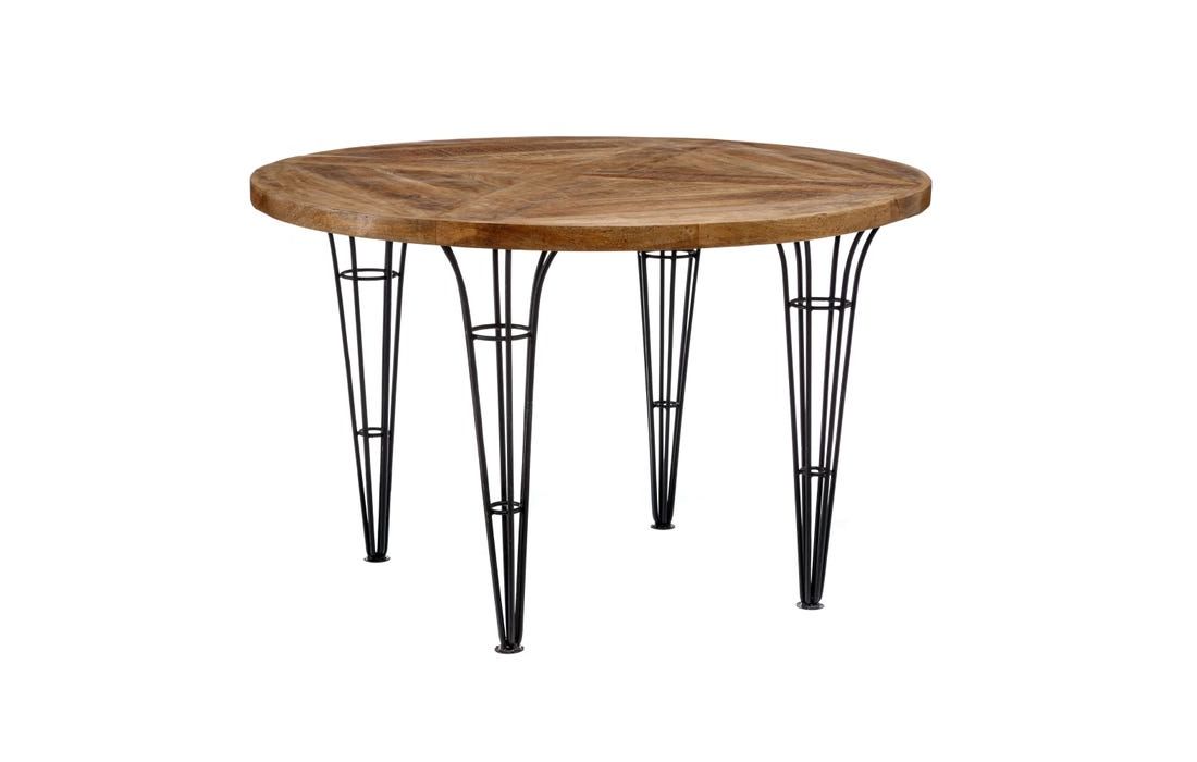 Mesa de jantar em madeira de manga e com pernas de ferro