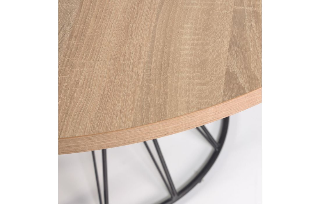 Mesa redonda com pés em metal preto com tampo em carvalho natural ou lacado a preto com Ø 120cm