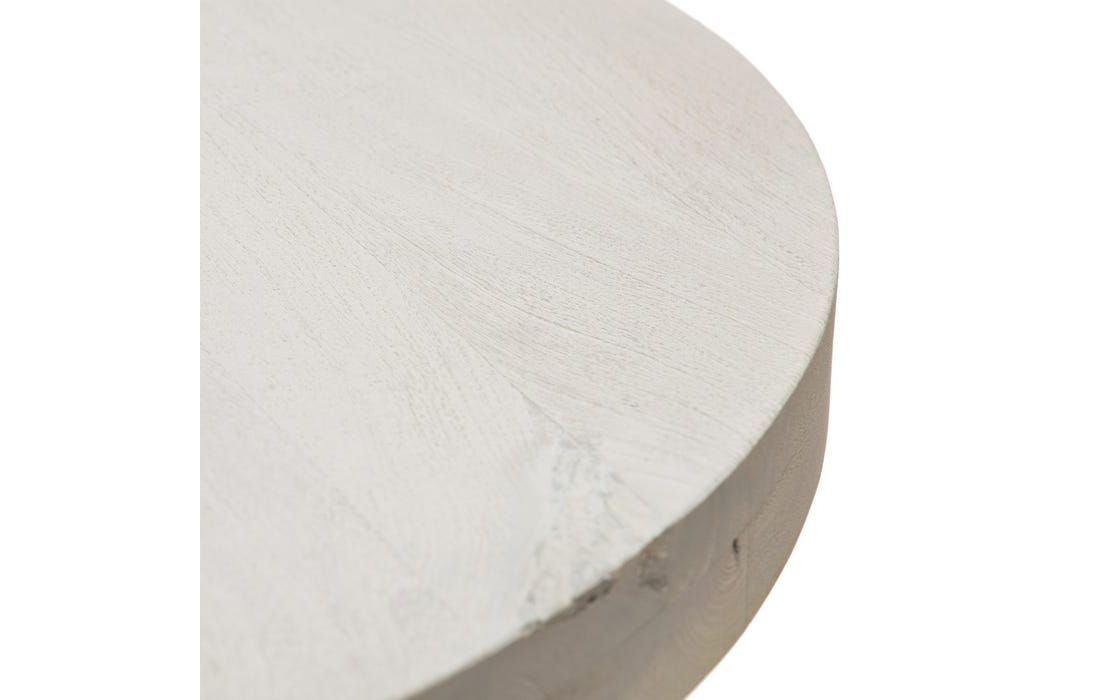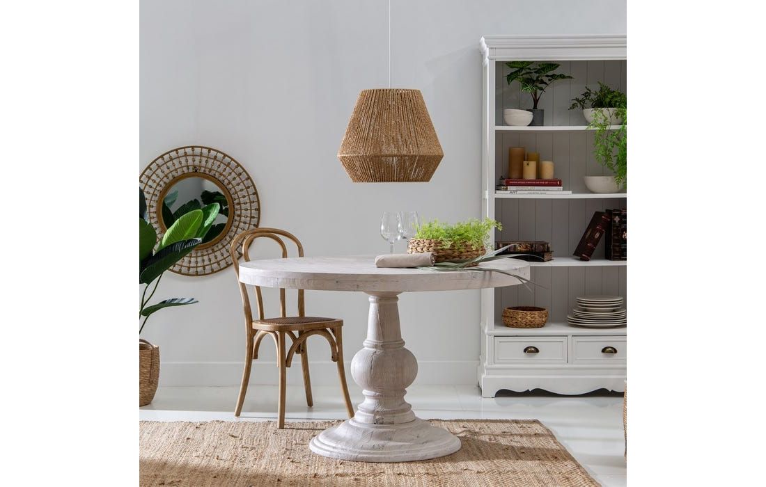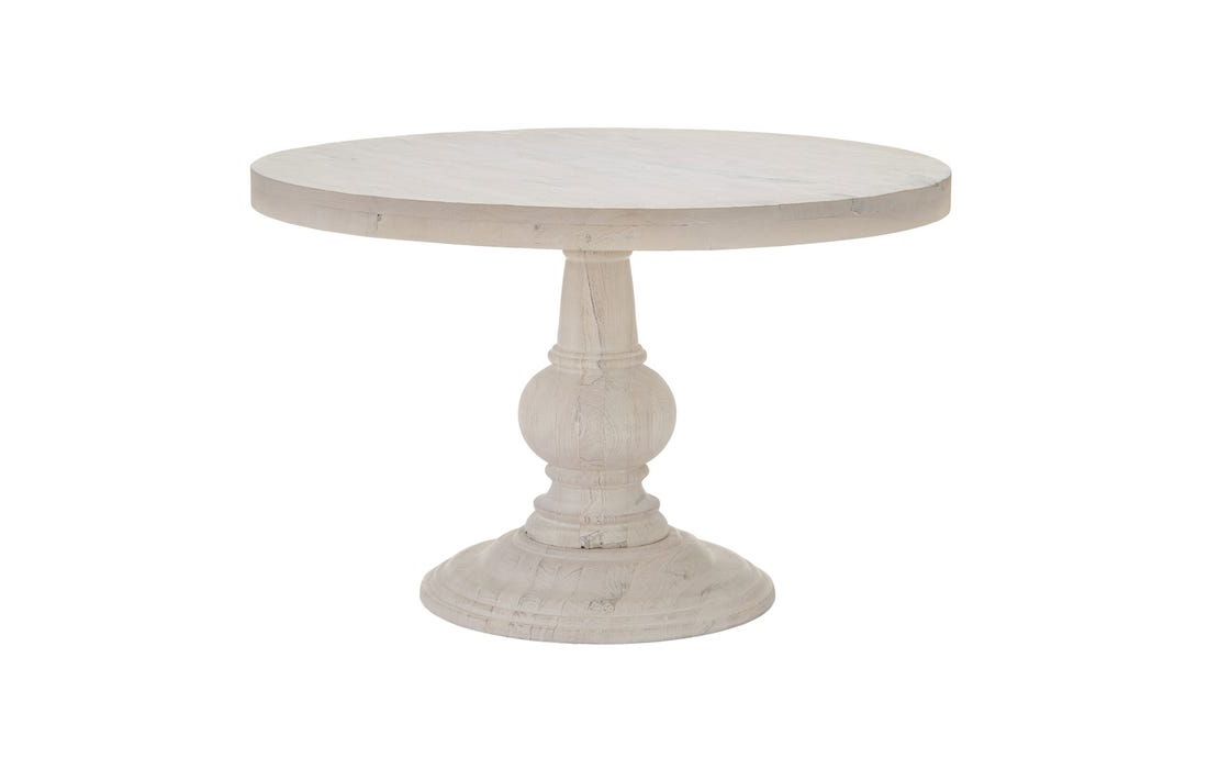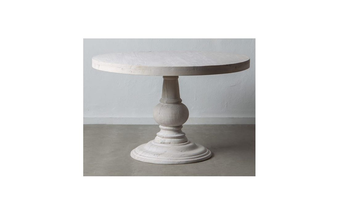 Mesa redonda em madeira maciça de freixo na cor branco envelhecido