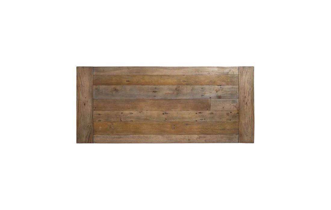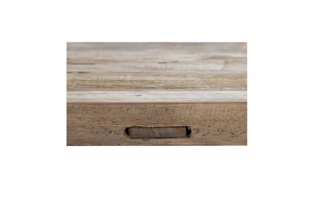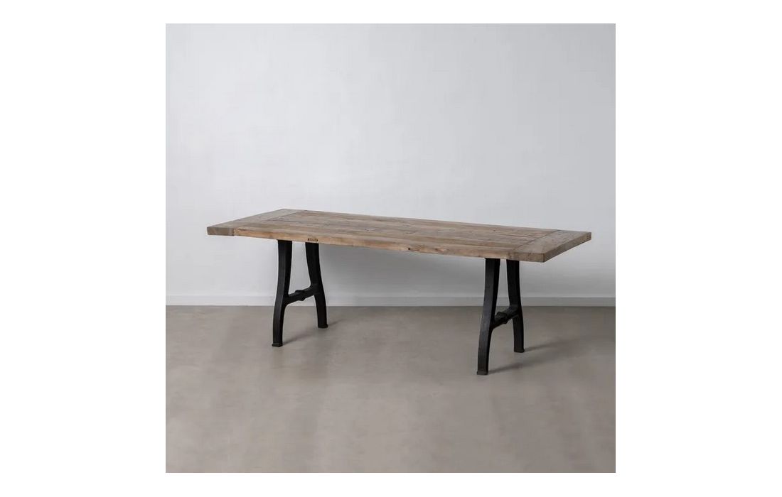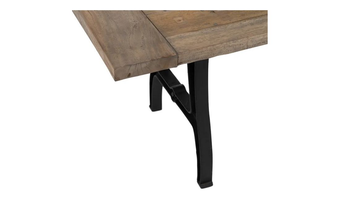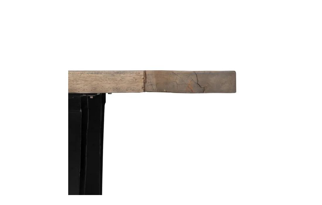 Mesa em madeira maciça reciclada na cor natural com pés em ferro na cor preto