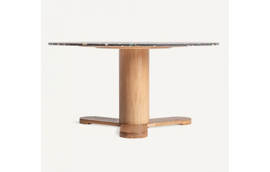 Mesa de jantar em terrazzo preto combinado com madeira de carvalhoDimensões em cm