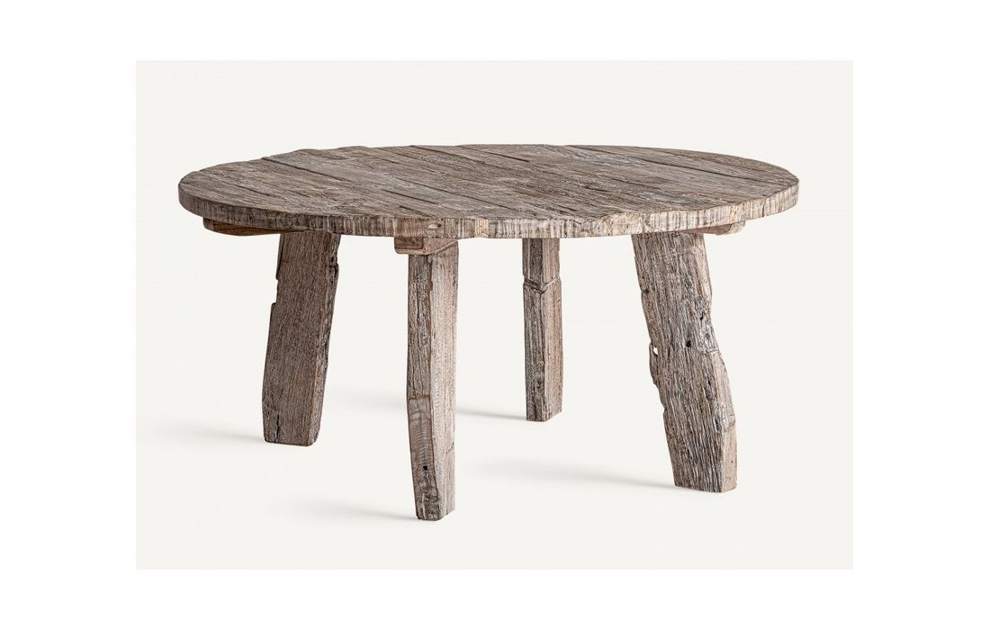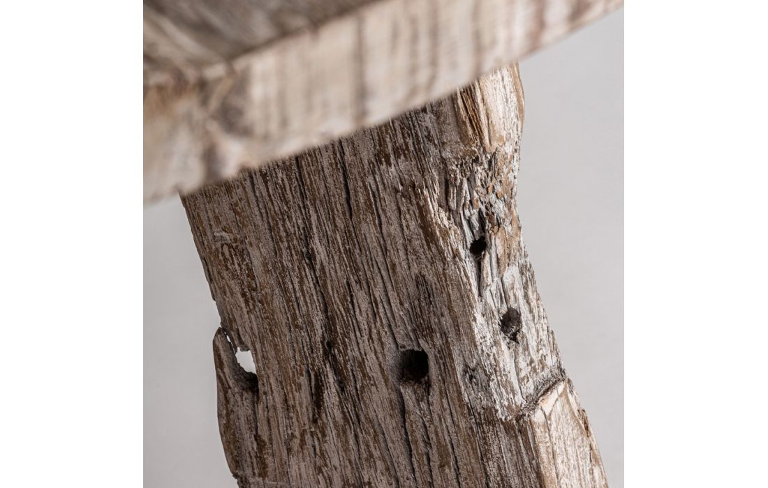 Mesa de jantar em madeira maciça de mango na cor off White com acabamento envelhecido