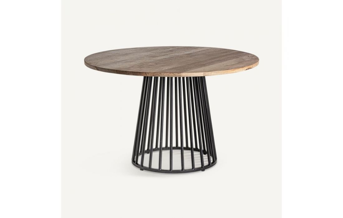 Mesa de jantar redonda feita em madeira de mango e ferro