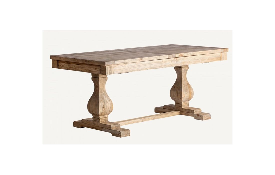 Mesa de jantar extensível confeccionada em madeira de olmo reciclada na cor castanha