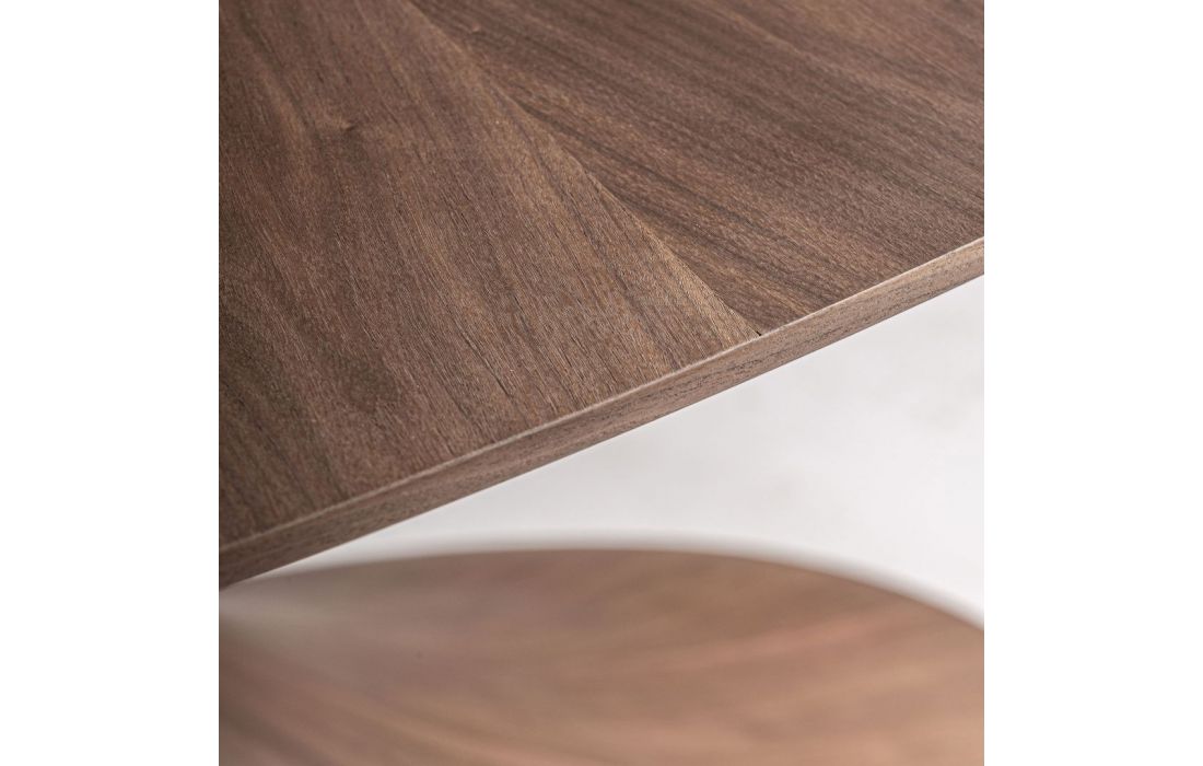 Mesa de jantar destaca-se pelo seu tampo folheado a nogueira com acabamento natural, a sua estrutura combina MDF e fibra de vidroDestinatário :