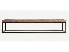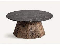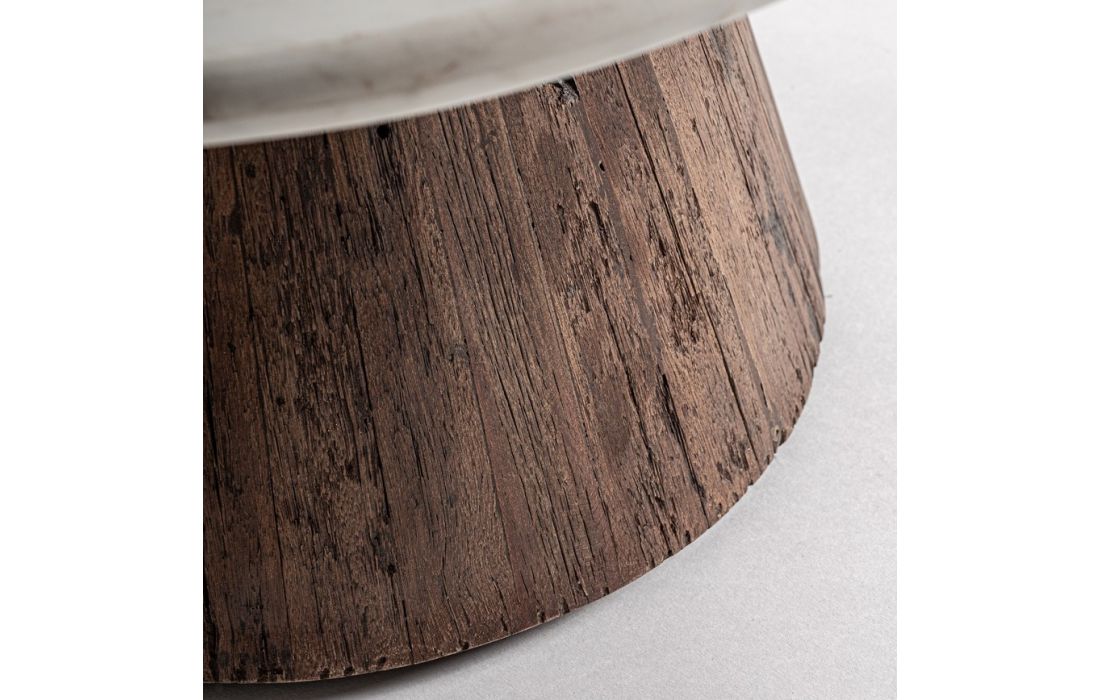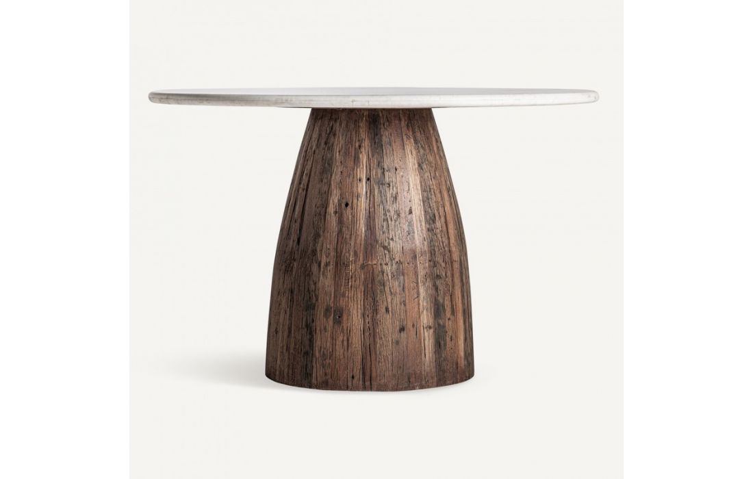 Mesa de jantar estilo rústico em madeira recuperada e mármore branco