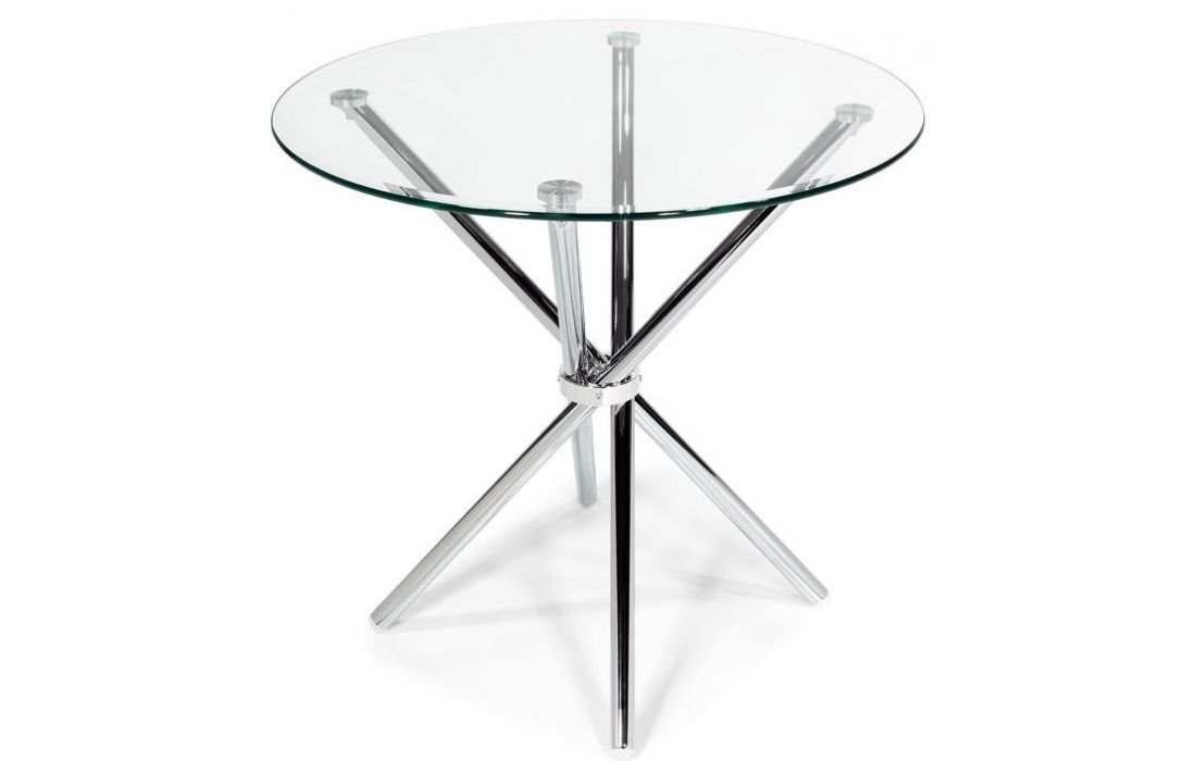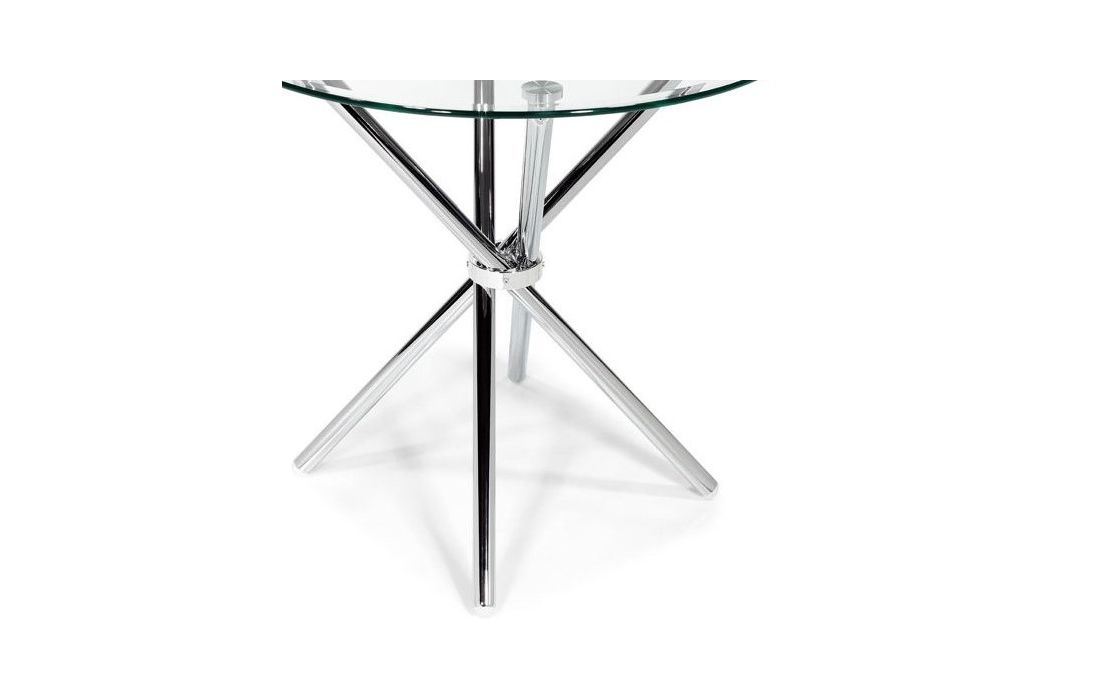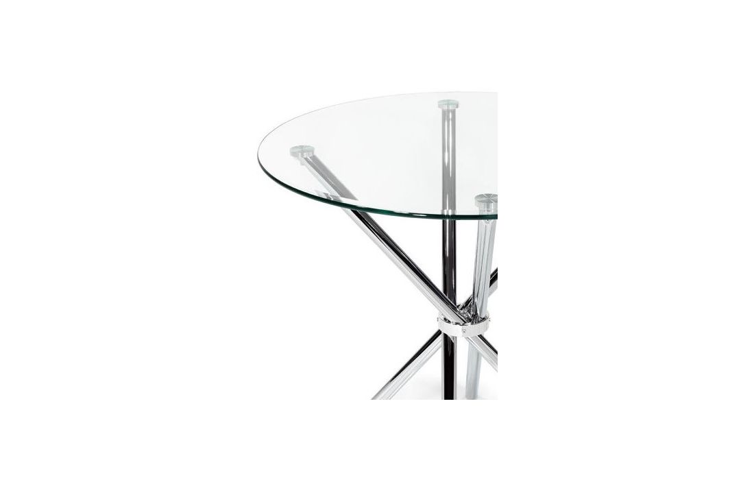 Mesa de refeições com estrutura em inox e tampo em vidro temperado