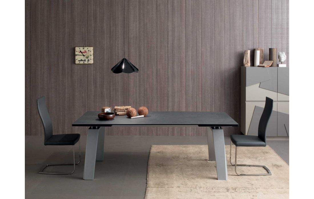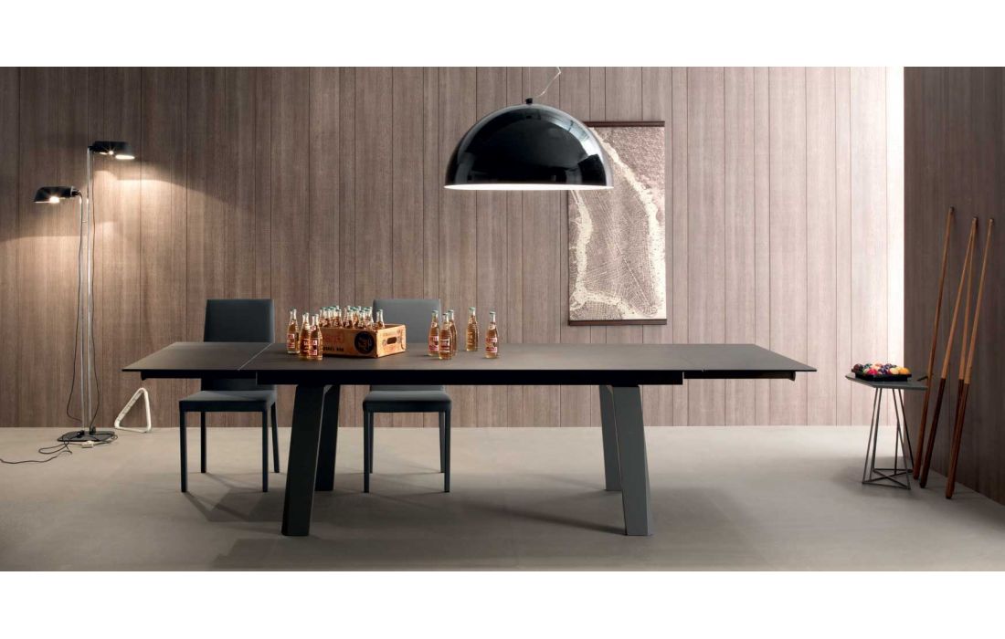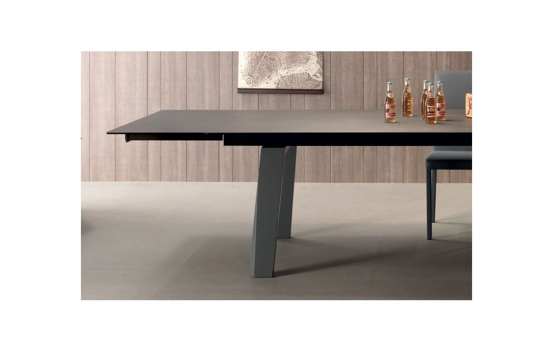 Mesa extensível com 2 extensões de (50cm cada lado) , estrutura da extensão em aluminio anodizado em preto, com pés em metal cinza e tampo em cerâmica savoia cinza claro, cinza antracite, cinza perla ou oxide escuro