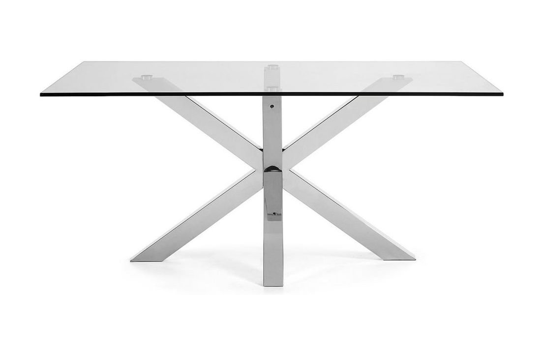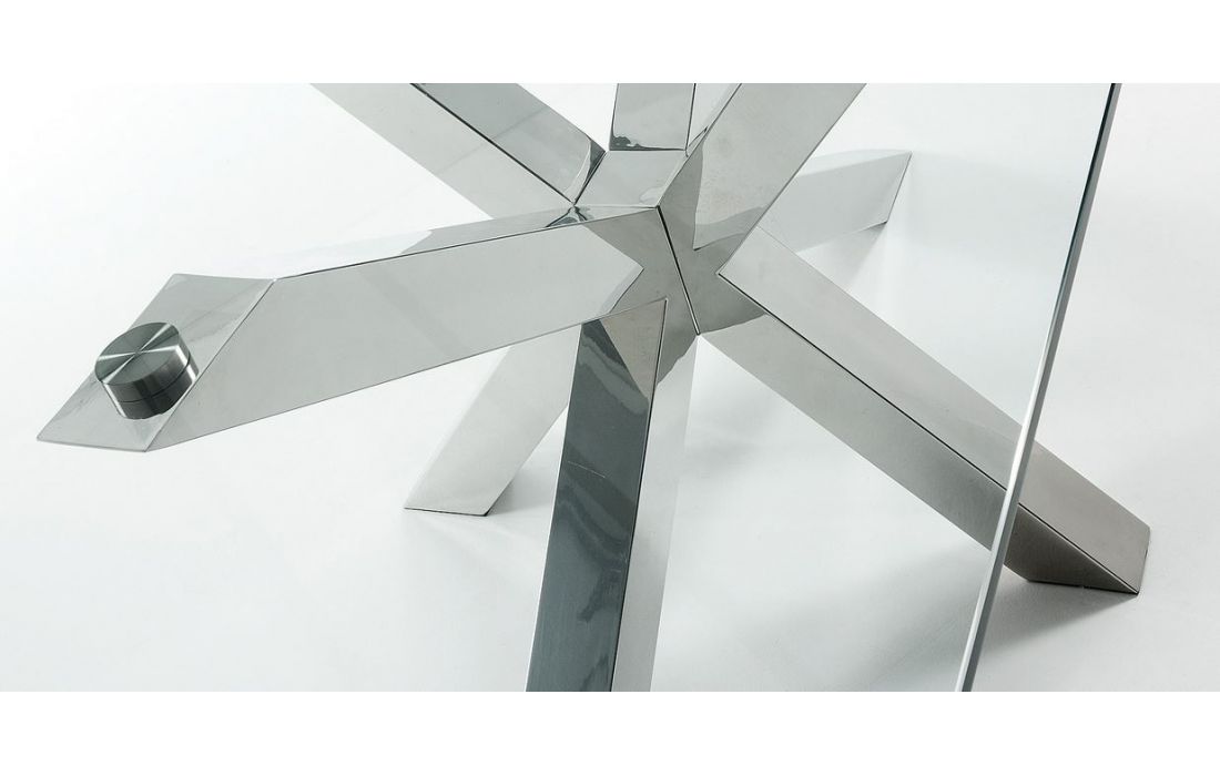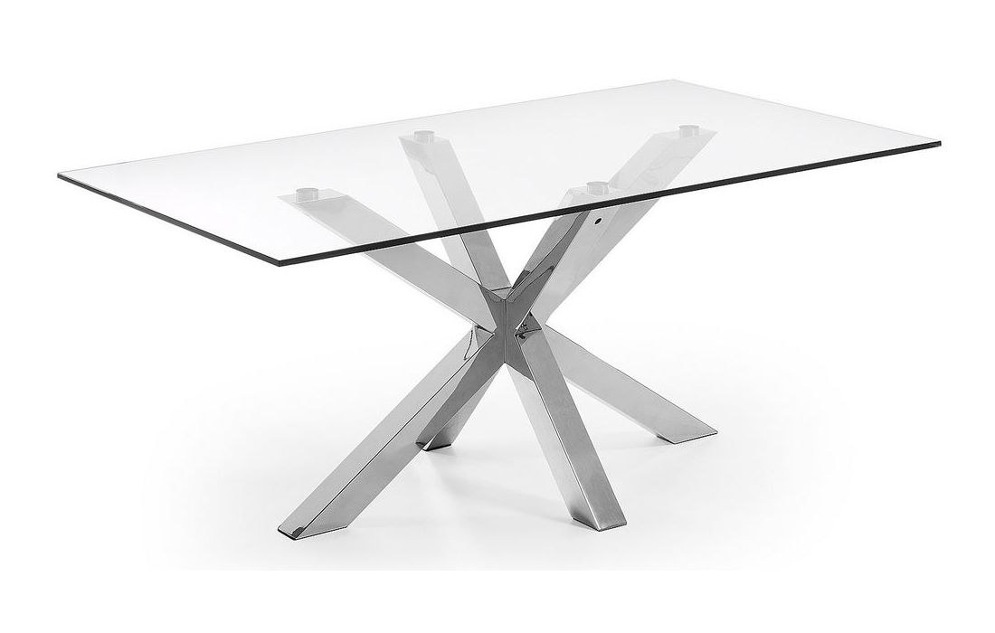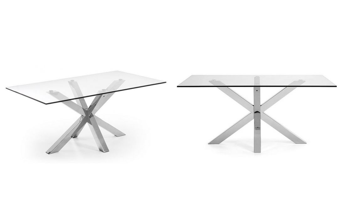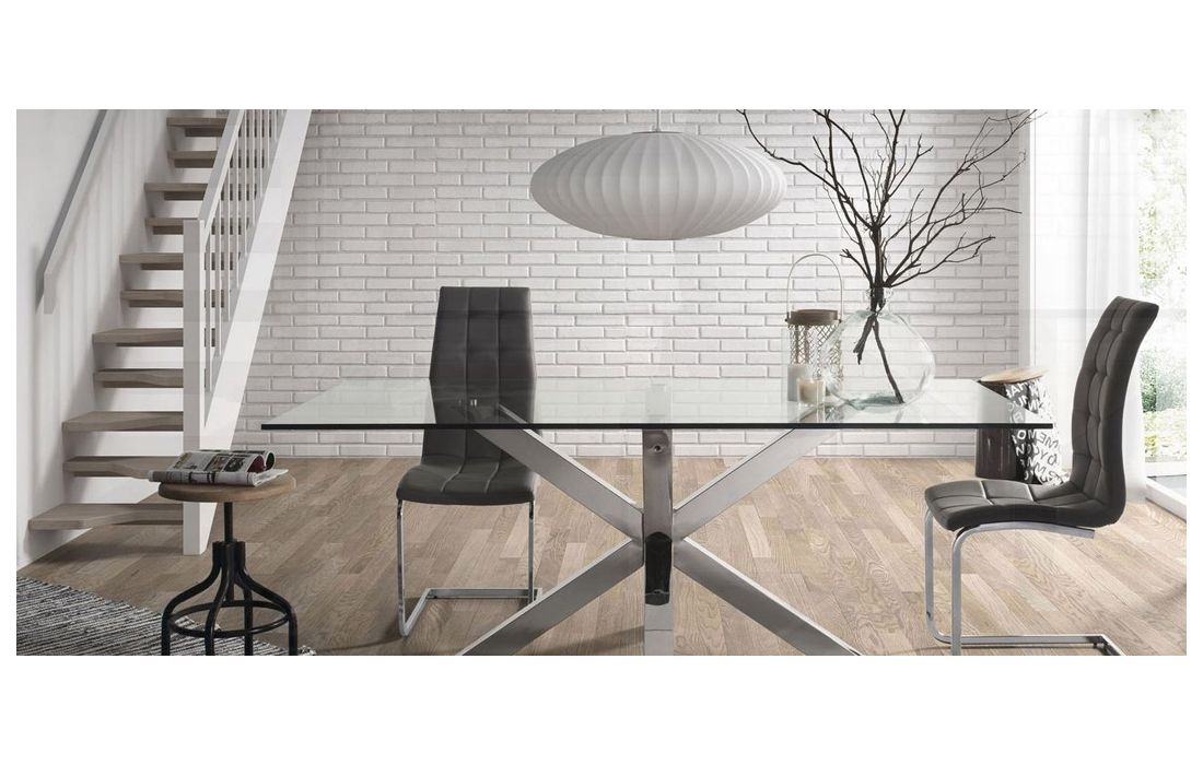 Mesa rectangular c/ 3 medidas possíveis c/ tampo em vidro temperado transparente c/ pés em aço cromado.