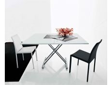 Prazo de entrega: 30/45 dias Mesa com base cromada e tampo em MDF branco ou cinza lacado brilho ou com base em MDF bege com tampo em vidro extra claro begeMesa pode- se transformar em mesa de centro ou jantar.