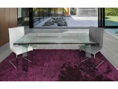 Prazo de entrega: 30/45 dias Mesa extensível com estrutura de madeira lacada, 2 placas de aço na baseestrutura extensível de alumínio e tampo em vidro temperado trasparente de 12mm de espessura, com 2 extensões, cm 45 cada. Tampo e extensões com bordas de corte 45 °