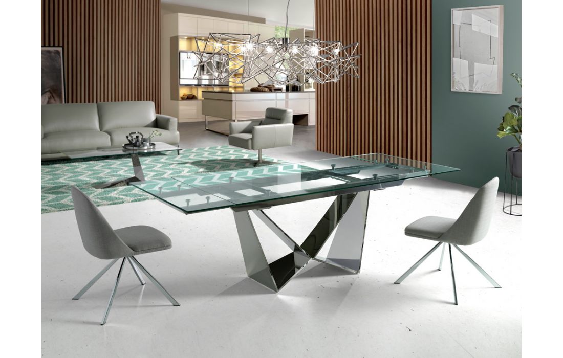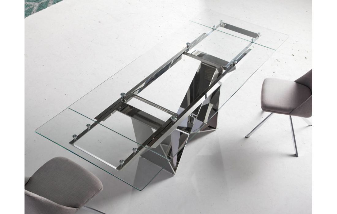 Mesa extensível em aço cromado c/ tampo de vidro temperadoDestinatário :