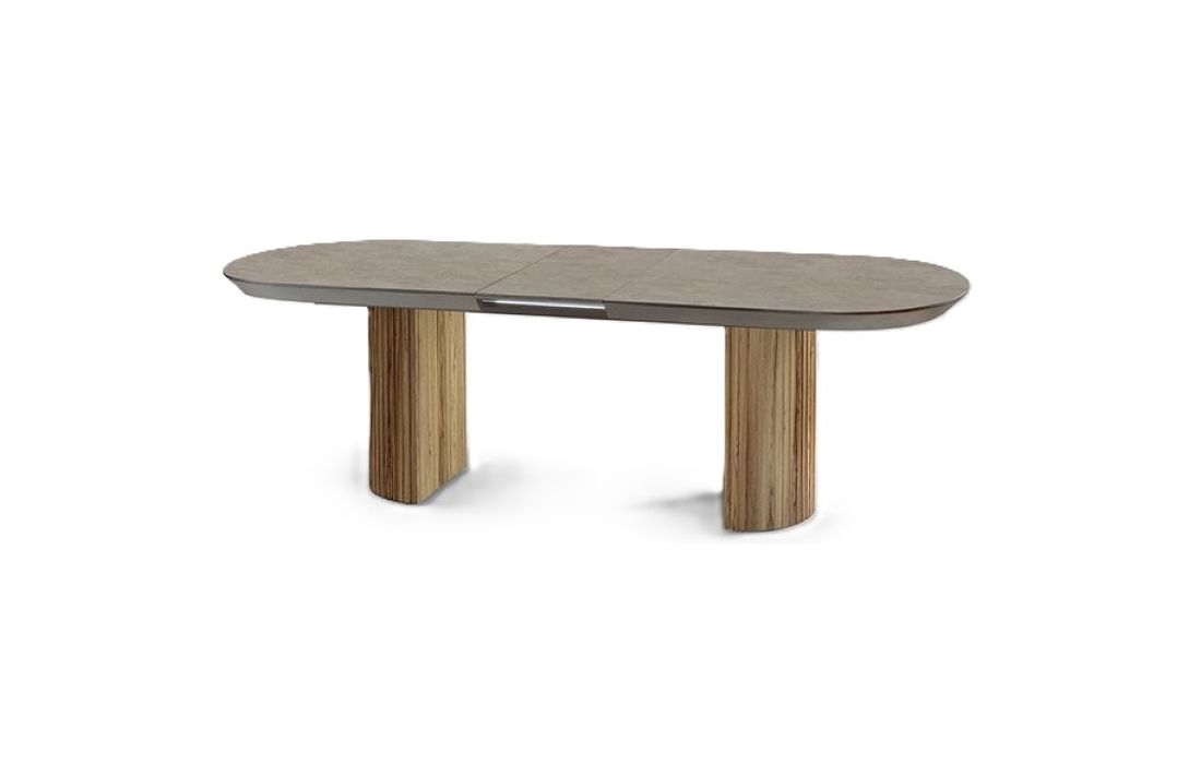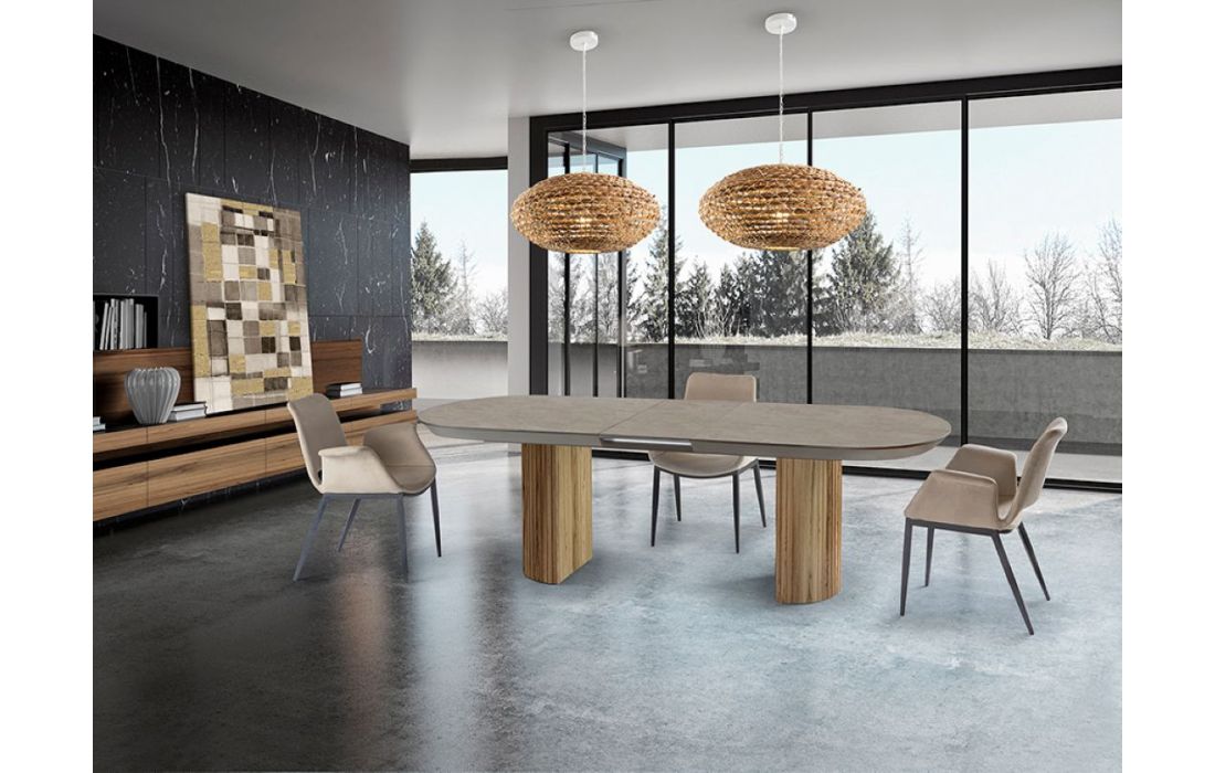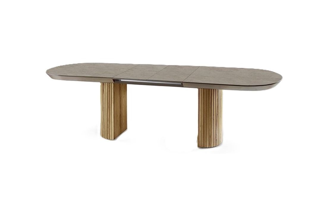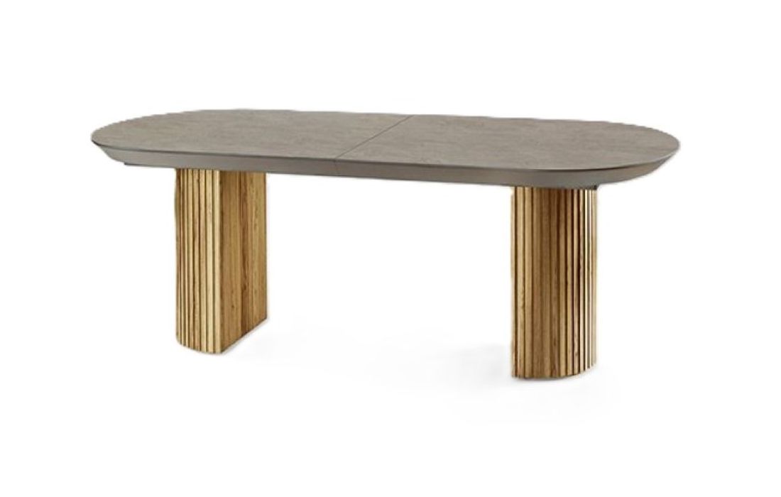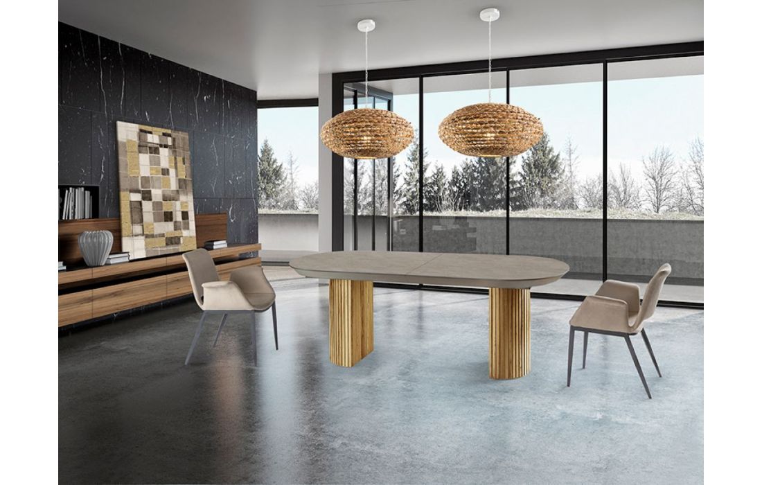 Mesa de jantar extensível estrutura realizada em MDF, pés canelados acabamento em madeira e tampo de MDF com superfície em melamina e acabamento pedra mateDestinatário :