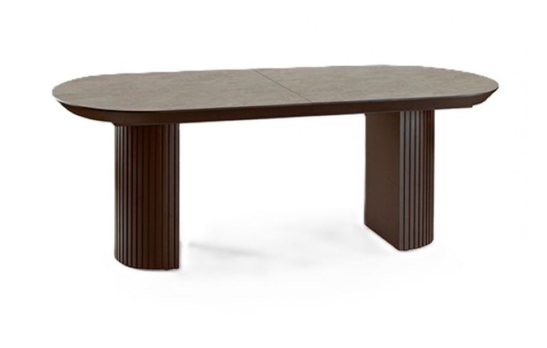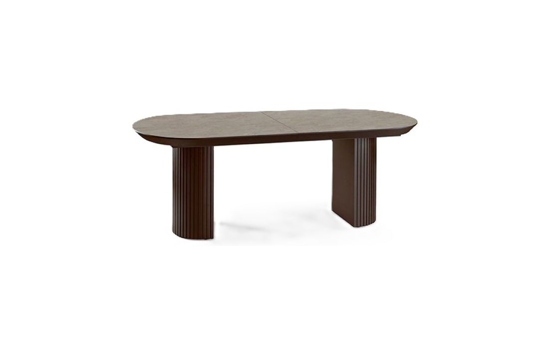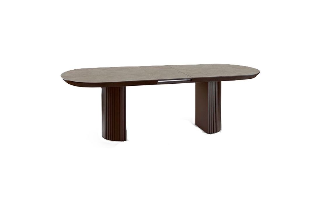 Mesa de jantar extensível estrutura realizada em MDF, pés canelados acabamento em madeira e tampo de MDF com superfície em melamina e acabamento pedra mateDestinatário :
